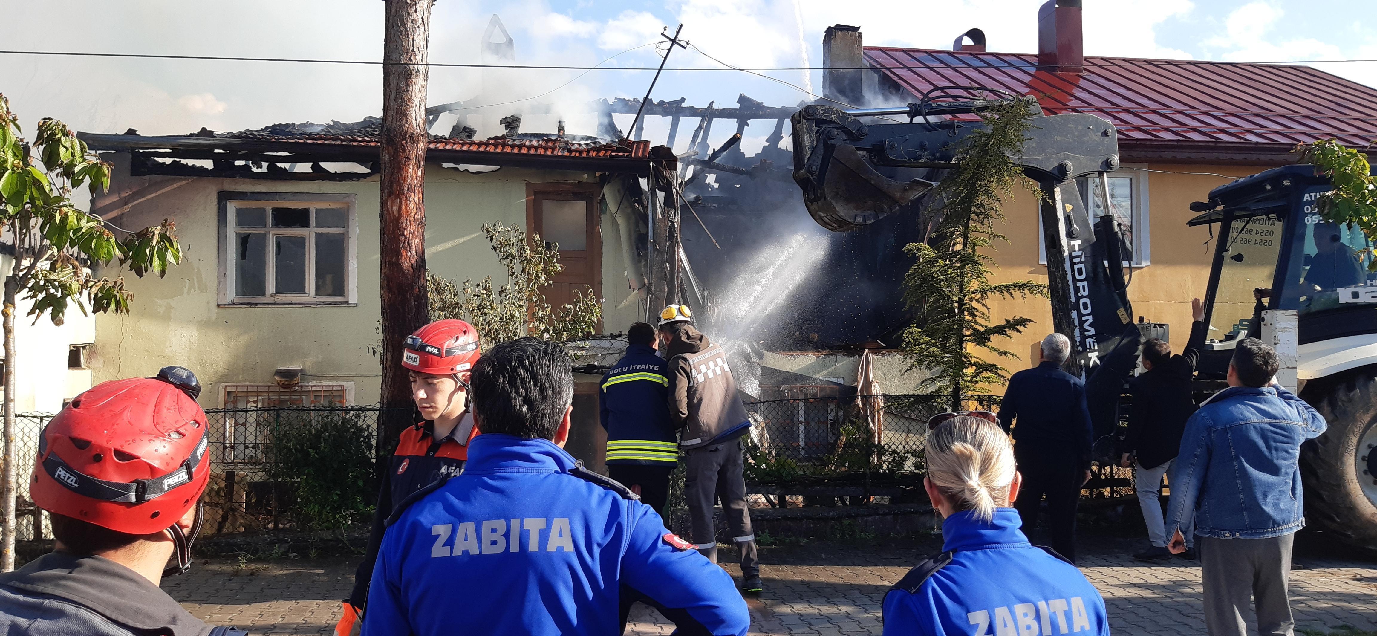 Oğuzhan EKE/ BOLU, (DHA)- BOLU’da, 2 ev ve 1 depo çıkan yangında kullanılamaz hale geldi. Yangının daha fazla yayılmasını önlemek amacıyla evlerden biri iş makinesiyle yıkıldı.