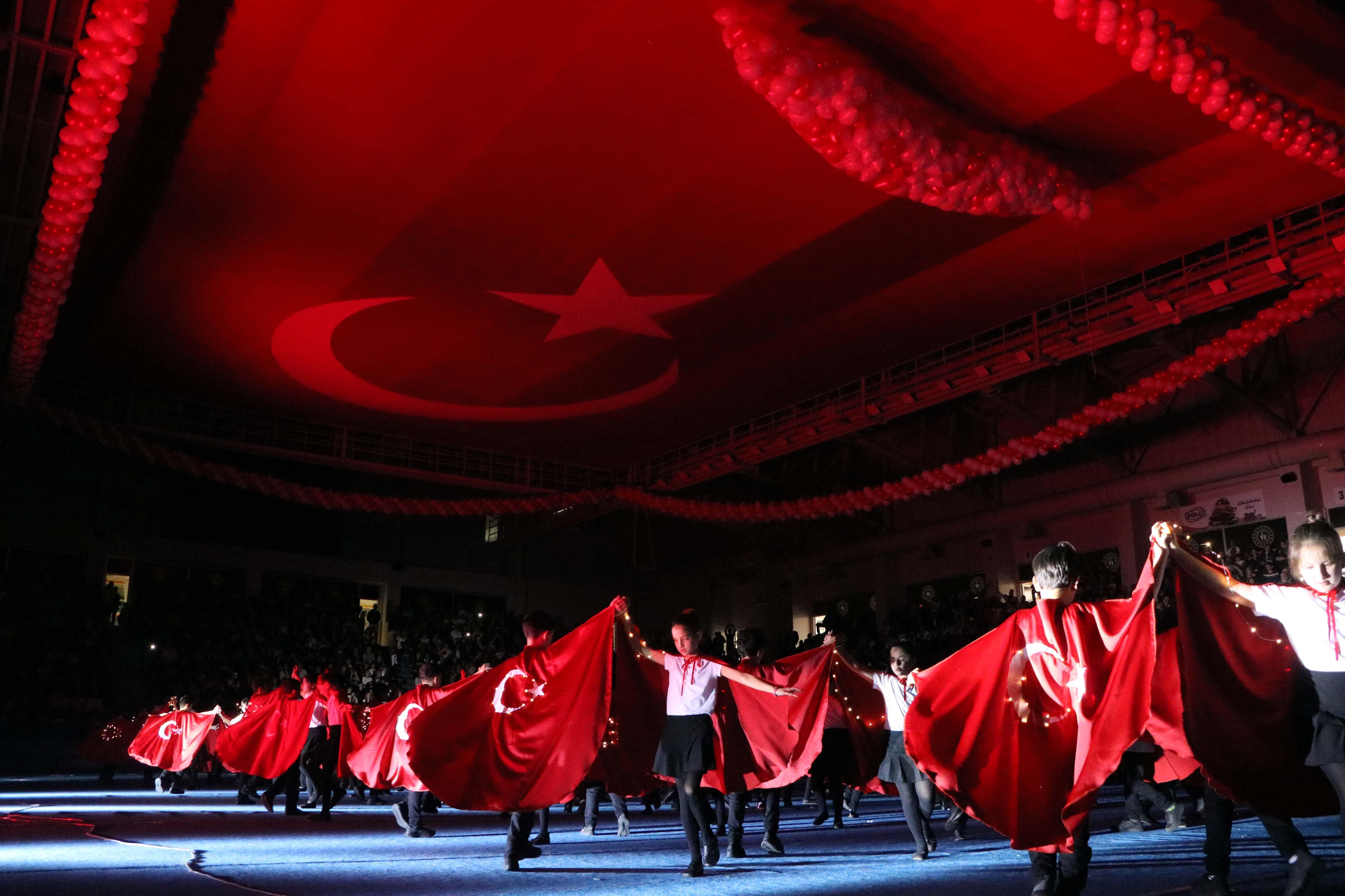 Mutlu YUCA-Zübeyde ÖZMEN/BOLU,(DHA) – BOLU’da 23 Nisan Ulusal Egemenlik ve Çocuk Bayramı kutlama programında öğrencilerin kurtuluş mücadelesini anlattığı oyun ile Türk bayraklarıyla dans gösterileri ilgiyle izlendi.