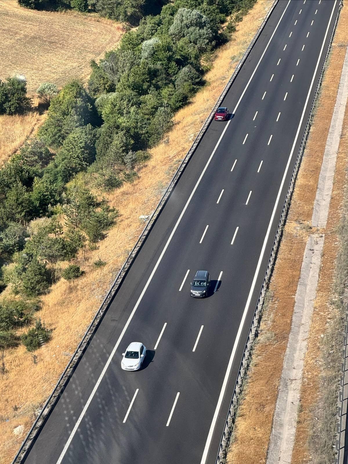 Ankara-İstanbul arasındaki önemli geçiş noktası olan Anadolu Otoyolu’nun Bolu kesimi ile Yeniçağa-Mengen-Devrek D-750 kara yolunda Bolu İl Jandarma Komutanlığı ekipleri tarafından havadan denetim yapıldı. Jandarma Havacılık Komutanlığına ait cayrokopter ile trafik kurallarına uymayan sürücüler tespit edildi. Denetimlerde bin 378 araç kontrol edildi. Denetimlerde emniyet şeridi üzerinde duraklama yapan, park eden, şerit izleme ve değiştirme kurallarına uymayan 23 sürücüye toplam 120 bin 847 TL ceza kesildi. (DHA)