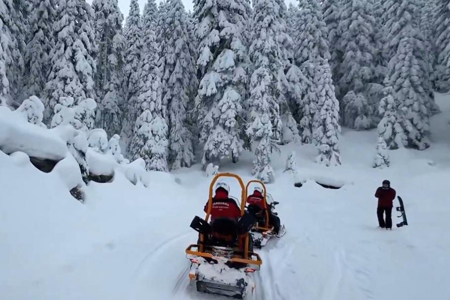 Mutlu YUCA/ BOLU, (DHA)- BOLU’da kayak merkezi Kartalkaya’da görev yapan Jandarma Arama Kurtarma (JAK) timleri kayak yapmak için girdikleri ormanda düşüp, kar altında mahsur kalan kayakçıyı kurtarma tatbikatı yaptı. Kar motorları ve özel eğitimli köpekle bölgeye giden ekipler, kayakçıyı kurtardı.