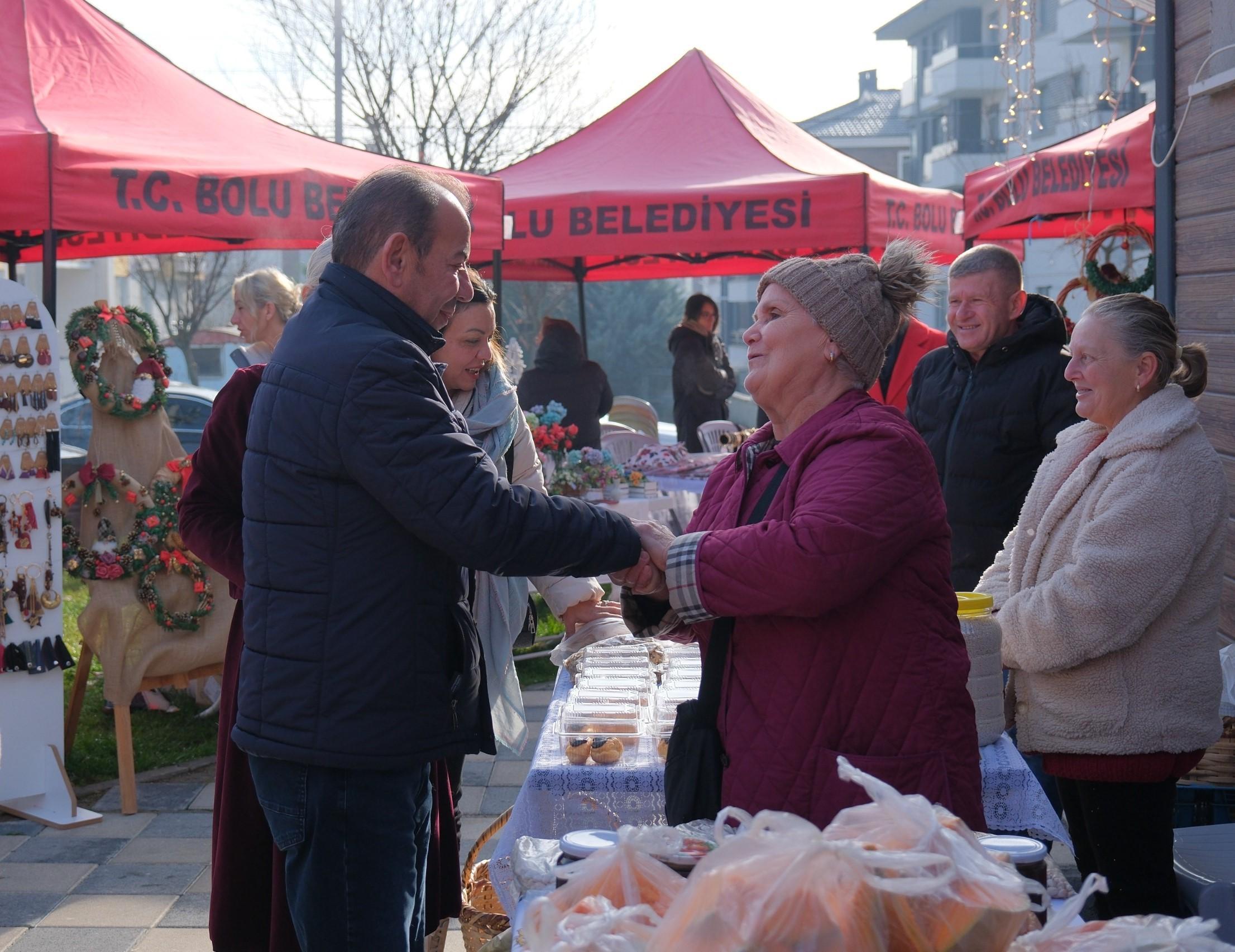 Bolu Belediye Başkanı Tanju Özcan da, beraberindeki başkan yardımcıları ve daire müdürleriyle birlikte Alpağut Mahallesi Muhtarlık binası önünde kurulan panayırı ziyaret ederek, ürün satın alıp bağışta bulunarak kampanyaya destek verdi. (DHA)