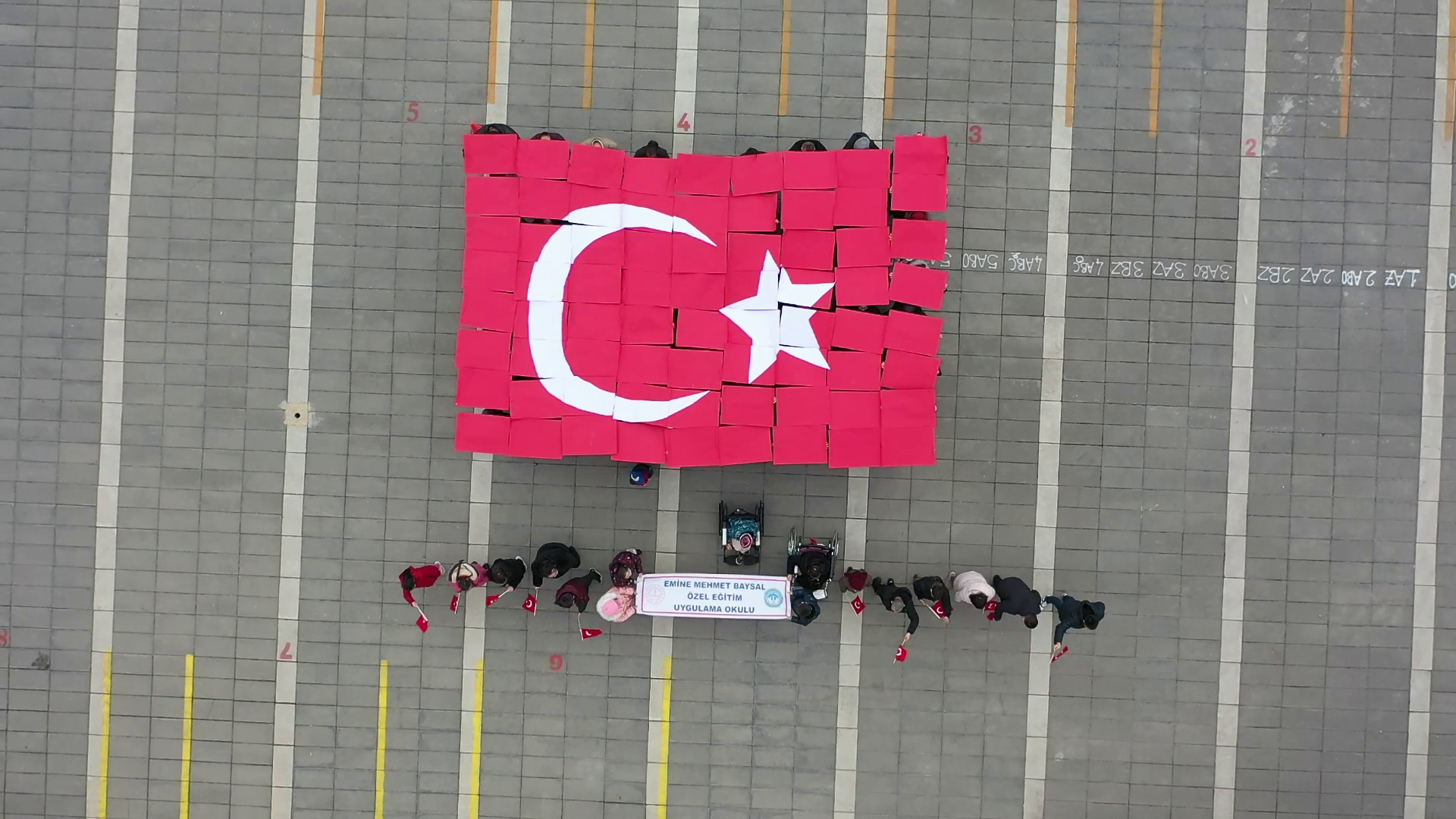 Emine Mehmet Baysal Özel Eğitim Uygulama Okulu'nun bahçesinde düzenlenen ‘Bayrak sevgisi’ temalı etkinlikte, özel öğrenciler ve aileleri Türk bayrağına duydukları sevgi ve bağlılığı müzikli gösteriyle ifade etti. Öğretmenler rehberliğinde hazırlanan programda, okul öğretmenleri ve veliler, ellerindeki renkli kartonlarla Türk bayrağı figürü oluşturdu. Etkinlik, öğrencilerin ellerindeki Türk bayrağı bağlı balonları gökyüzüne bırakmasıyla sona erdi. (DHA)