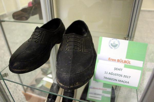 "Müzede ayakkabıların ve gönderilen yazıların yanı sıra ayakkabı imalatında kullanılan aletler ve malzemeler, ayakkabı ile ilgili tablolar ve seramik çalışmaları da sergileniyor. Müzede, Trabzon’un Maçka ilçesi kırsalında bölücü terör örgütü mensupları tarafından 15 yaşında şehit edilen Eren Bülbül’ün kara lastikleri de sergileniyor. Kara lastikler, müzede ziyaretçilerin en çok hüzünlendiği emanet. Sergide ayrıca Erkan Yolaç, Ahmet Kaya, Neşe Karaböcek, Berkant, Nilüfer, Kenan Işık, Hidayet Türkoğlu, Rüştü Reçber, Rifat Hisarcıklıoğlu, Sinan Şamil Sam, Kartal Tibet, Mete Gazoz, Garo Mafyan, Mehmet Ali Birand, Belkıs Akkale, Münir Özkul gibi ünlü isimlerin ayakkabıları sergileniyor. Müzede ziyaretçilerin en çok ilgisini 246,5 santim boyu ile 'Dünyanın en uzun insanı' rekoru ile Guinness Rekorlar Kitabı'na giren Sultan Kösen'in 60 numaralı ayakkabısı, Guinness Rekorlar Kitabı'na 215,16 santimetre boyuyla giren 'Dünyanın en uzun kadını' Rümeysa Gelgi'nin gönderdiği 51 numara ayakkabıları, Van'dan gelen reşik, Kahramanmaraş'tan gelen yemeniler, Hollanda'dan gelen sabo türü geleneksel ayakkabı, Fas'tan ve Cezayir'den gelen ayakkabılar, Kazakistan'dan gelen keçe türü ayakkabı, İspanya'dan gelen flamenko ayakkabısı ile telkari işlemeli terlikler çekiyor." (DHA)