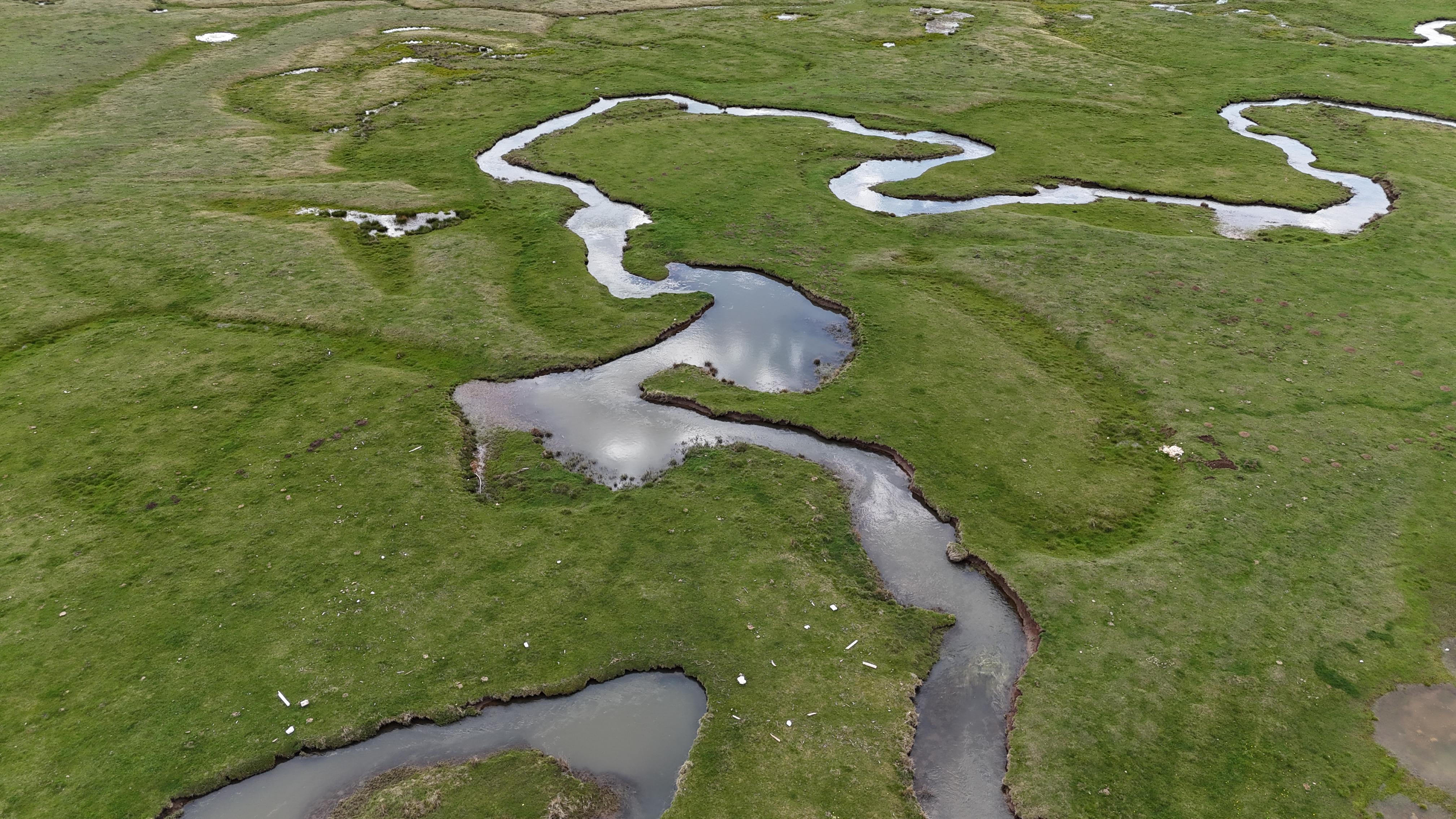 Murat KÜÇÜK- Mutlu YUCA/BOLU, (DHA)- BOLU’da Köroğlu Dağları'nın eteklerinde bulunan yüzlerce dönüm meraların bulunduğu Sarıalan Yaylası'nda eriyen kar suları ve yağmurla birlikte suyla dolarak yeşilliklerin arasından süzülen menderesler eşsiz manzara oluşturdu.