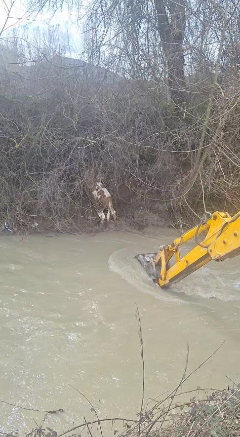 Hızır İlyas YILDIRIM/MUDURNU (Bolu), (DHA)- BOLU’nun Mudurnu ilçesinde dereye düşen 6 aylık buzağı, köylüler tarafından kurtarıldı.