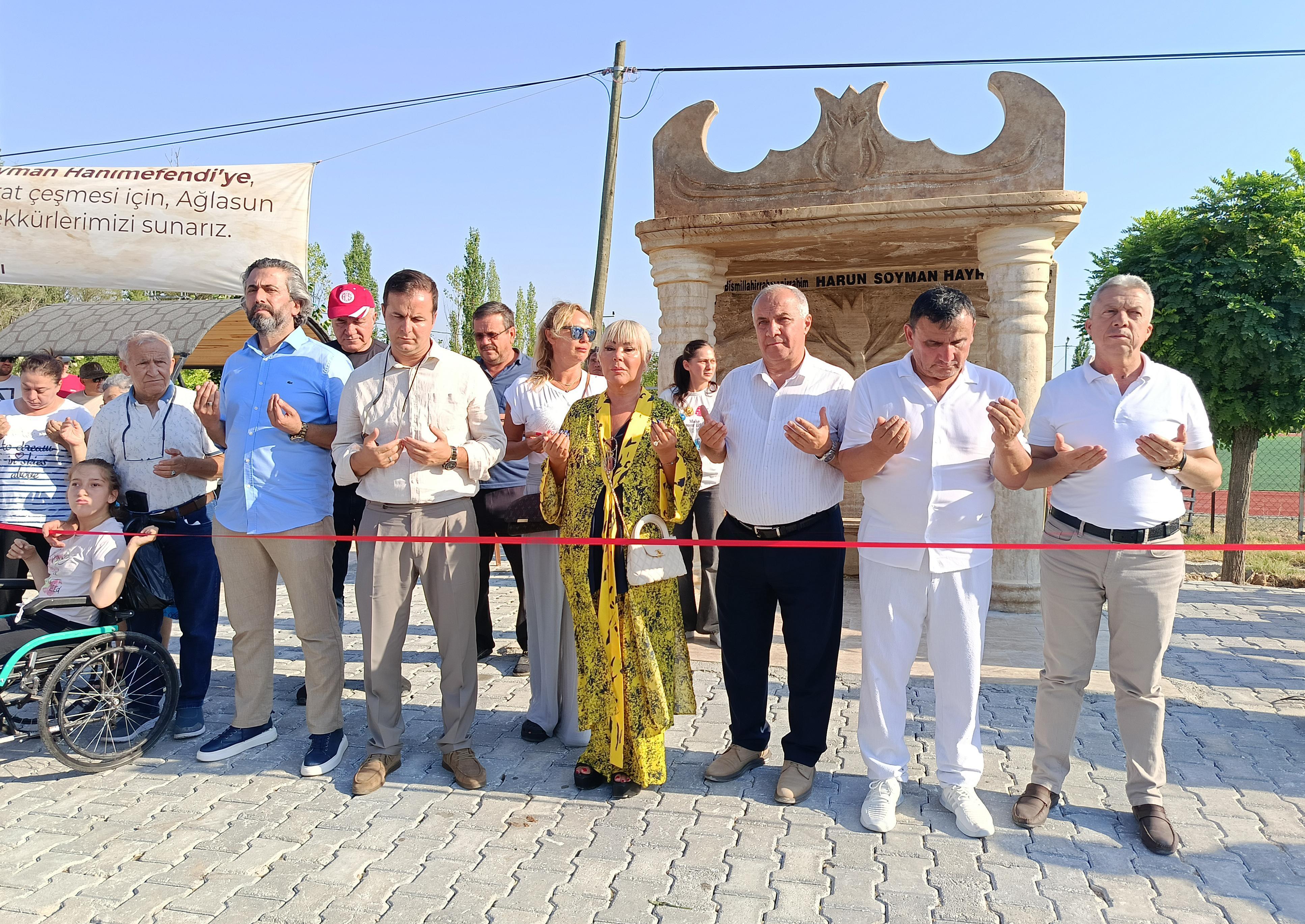 Safiye Soyman, "Canım oğlum Harun'un sağlık sorunları nedeniyle 6 yıl önce Burdur'un Ağlasun ilçesine bağlı Yeşilbaşköy'e yerleştik. Burasının havası ve suyu oğluma çok iyi geldi. Sağlık açısından çok faydasını gördük. Ama oğlumu geçen yıl kaybettik. Harun'um adına Ağlasun'da bir çeşme yaptırmaya karar verdim. Kaymakam Sayın Metin Eyyüpkoca ve Belediye Başkanımız Ali Ulusoy'un da katkılarıyla Ağlasun- Burdur kara yolu üzerinde bulunan Uzunkum mevkiinde içme suyu çeşmesini yaptırdım. Oğlumun adı burada yaşasın. Herkes buradan su içerken dualar etsin inşallah. Herkese faydası olsun. Herkes faydalansın. Harun'um geçen yıl bu zamanlar vefat etti. Bugün onun aramızdan ayrılışının 1'inci yıl dönümü. Yarın da Muğla Bodrum da toprağa verilişinin yıl dönümü olacak. Oğlum Ağlasun'da vefat etti. Buranın benim hayatımda ayrı bir yeri var. Ömrüm boyunca hep Ağlasun ile beraber yaşayacağım. Emeği geçen bütün herkese teşekkür ederim. Allah razı olsun" dedi.