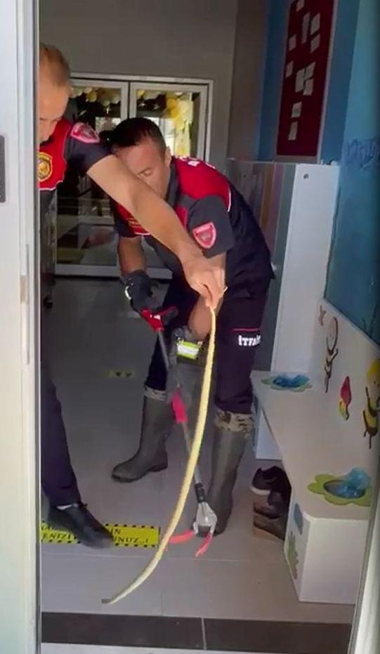Ayakkabılıktaki yılanı itfaiye doğaya bıraktı