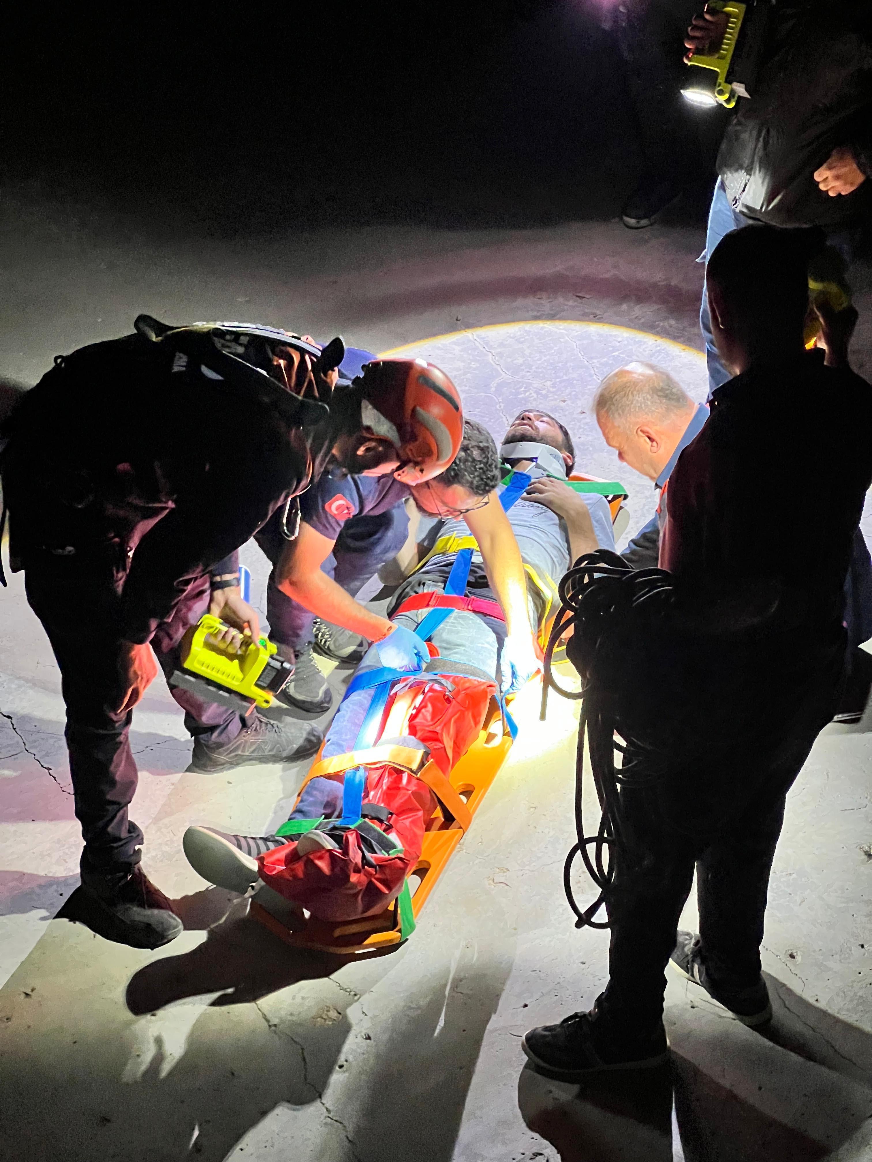 Mesut MADAN/BURDUR, (DHA)- BURDUR'da Karaçal Ali Kılcı Barajı'nda 4 metre yükseklikten beton zemine düşen Ali Demirel AFAD ekiplerince kurtarıldı