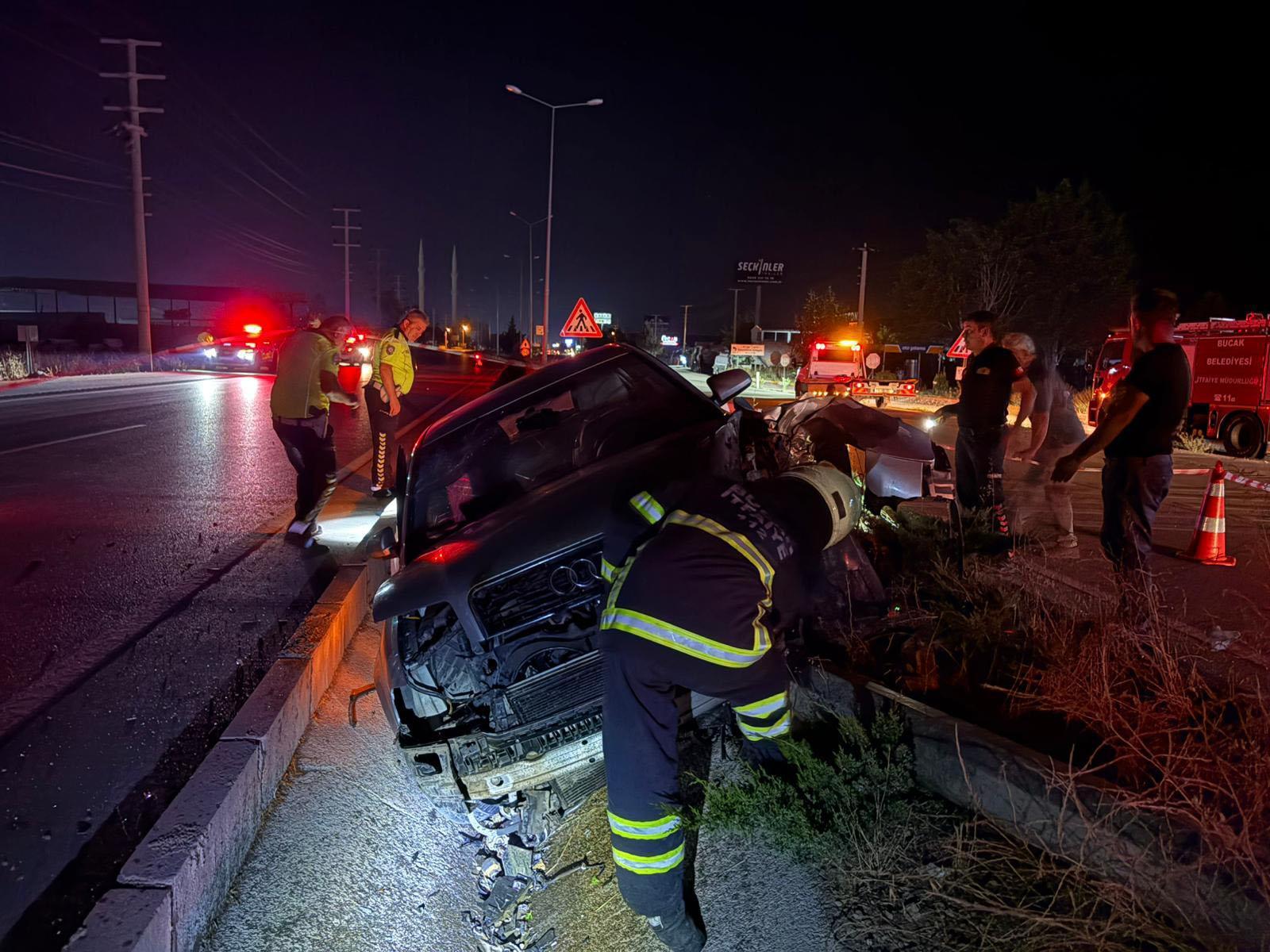 Halim AKCA/BUCAK, (DHA)- Burdur'un Bucak ilçesinde kontrolden çıkan otomobilin refüjdeki elektrik direğine çarptığı kazada 2 kişi yaralandı. Araçta çıkan yangın büyümeden söndürüldü.
