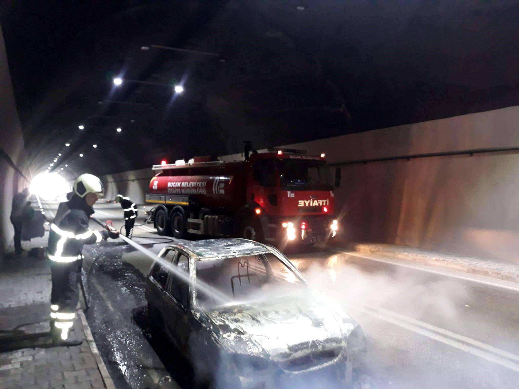 Halim AKCA/BUCAK, (DHA)- BURDUR'un Bucak ilçesindeki Kargı Tüneli'nde yanan otomobili itfaiye söndürdü.