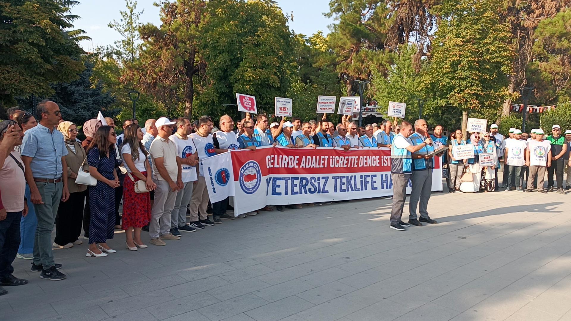 Cumhuriyet Meydanı'ndaki eyleme Memur- Sen Şube Başkanı Murat Bulut ile konfederasyona bağlı sendikaların şube başkanı ve üyeleri katıldı. Burada açıklama yapan Murat Bulut, "8'inci Dönem Toplu Sözleşme görüşmelerinde kamu işvereninin sunduğu teklife karşı ortak tepkimizi göstermek, genel merkezimizin eylem planı doğrultusunda sorumluluğumuzu yerine getirmek ve sesimizi işverene duyurmak için bugün buradayız. Kamu işvereni dün açıkladığı teklifte 2026 için yüzde 10 + yüzde 6, 2027 için yüzde 4 + yüzde 4 zam önerisinde bulundu. Öncelikle işveren heyetinin bu teklifini yok saydığımızı ve gerçekçi bulmadığımızı belirtiyoruz; görüyoruz ki işveren, tutmayan enflasyon hedeflerini baz alarak kamu görevlisine bu teklifi layık görmüştür. İşverenin teklifinde refah payı ve taban aylığa zam yoktur. Gelirde adaleti sağlayacak oran yoktur. Emekli ve emekçiyi gözeten bakış yoktur. Kamu işvereninin bu teklifi memurun yaşadığı zorlukların görmezden gelindiğini gösteriyor. Teklif, kamu görevlilerinde hayal kırıklığı oluşturmuştur. Kira artış oranının yüzde 41 olduğu bir zeminde, düşük belirlenmiş enflasyon hedefi kadar zam teklif edilmesi kabul edilebilir değildir" dedi.