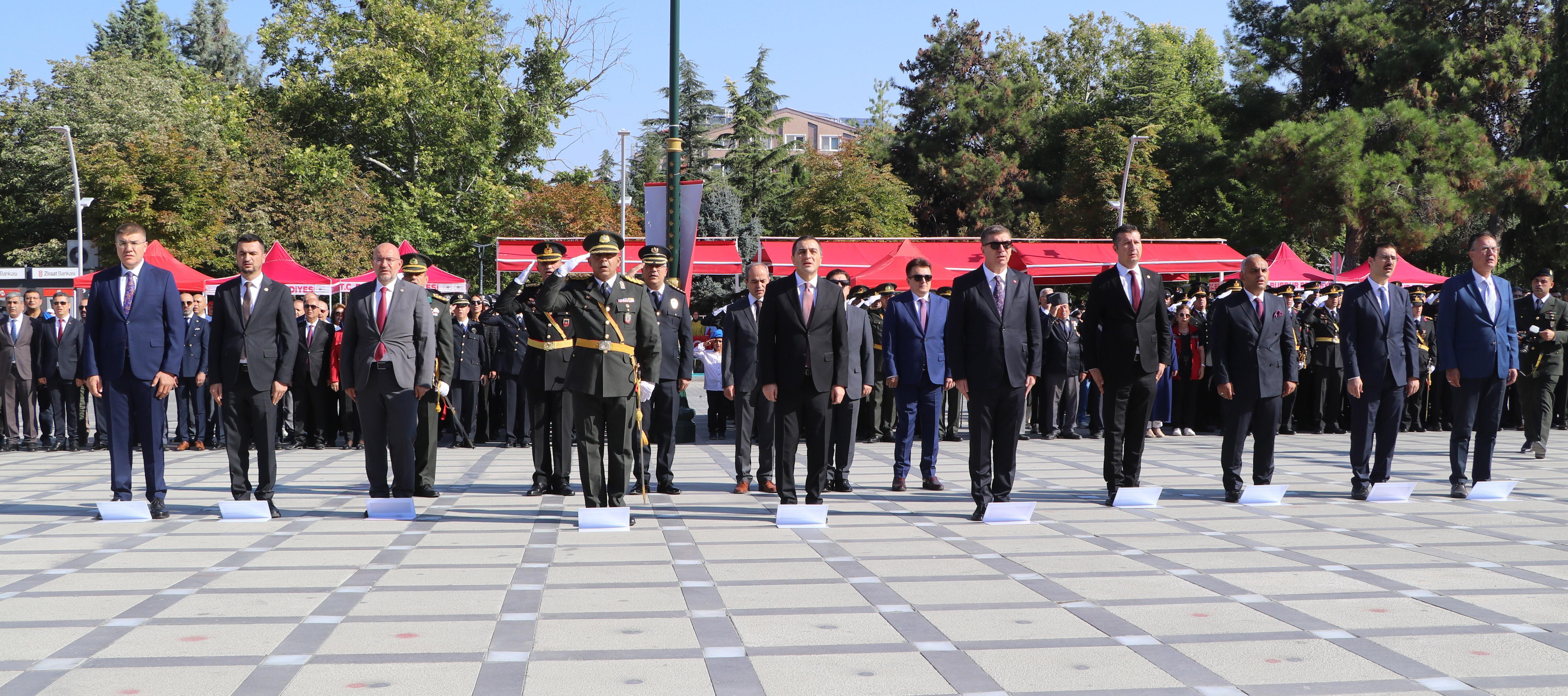 Vali Türker Öksüz'ün makamında tebrikleri kabul etmesinin ardından tören Cumhuriyet Meydanı'nda devam etti. Buradaki törende Vali Öksüz, Garnizon Komutanı Şimşek ve Belediye Başkanı Ercengiz törene katılanların bayramını kutladı. Saygı duruşu ve İstiklâl Marşı'nın ardından günün anlam ve önemini belirten konuşma Tank Üsteğmen Gürsel Namazcı tarafından yapıldı. Gazi Ayhan Özçelik tarafından şiir okunduktan sonra Cumhurbaşkanı Recep Tayyip Erdoğan'ın 30 Ağustos Zafer Bayramı mesajı okundu. Çeşitli branşlarda düzenlenen spor müsabakalarında dereceye giren öğrencilere ödülleri protokol üyeleri tarafından verildi. Tören, İl Jandarma Komutanlığı köpek timinin gösterisi, İl Jandarma Komutanlığı Asayiş Komando Bölüğü'nün gösterisi, halk oyunları gösterisi ve tören geçişiyle sona erdi. (DHA)