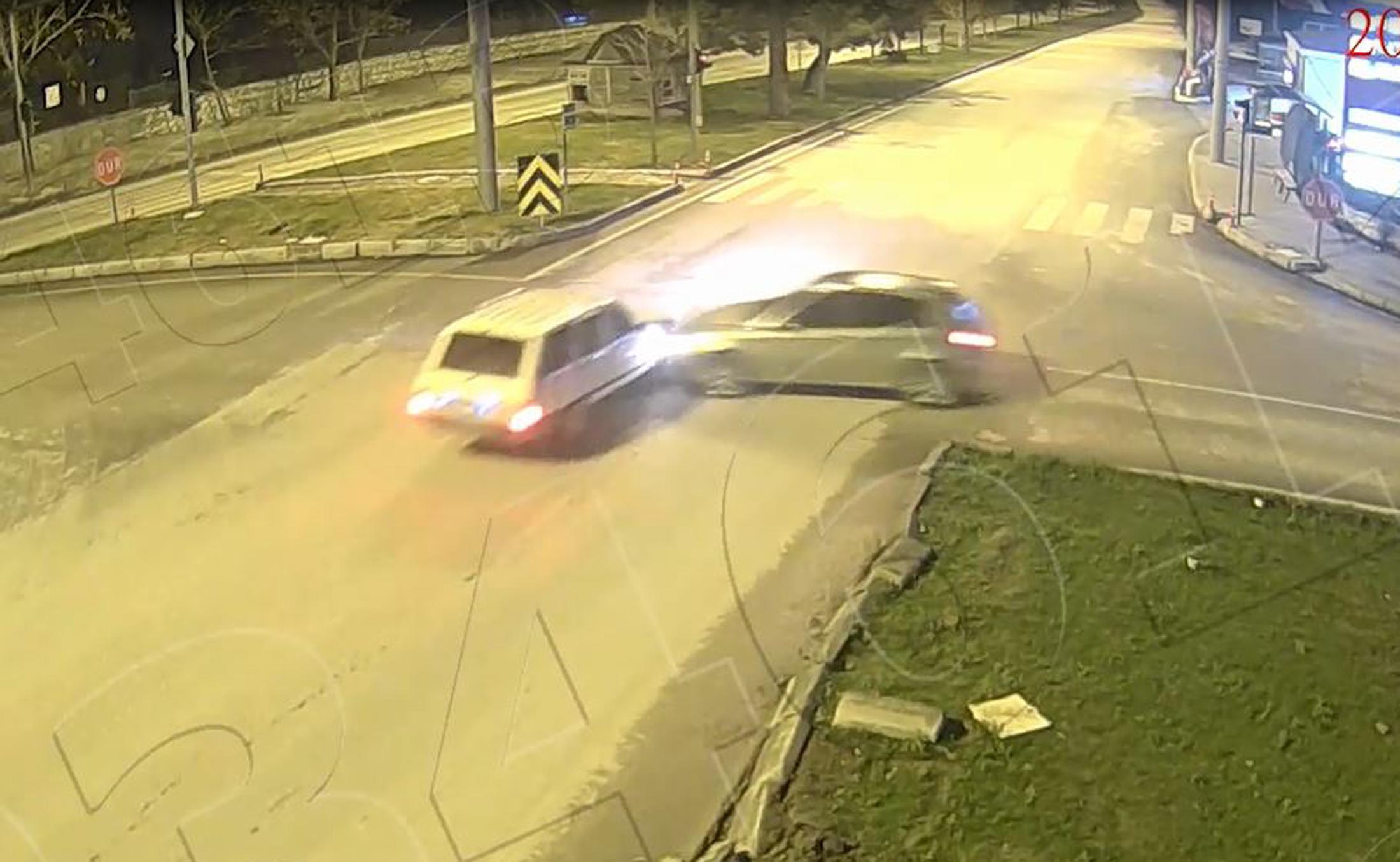 Mesut MADAN/BURDUR, (DHA)- BURDUR'da alkollü ve ehliyetsiz araç kullanmaktan yakalanıp, polis merkezindeki ifadesinden sonra serbest bırakılan Murat O.'nun, yaklaşık 1 saat sonra otomobiliyle başka bir araca çarptığı kazanın güvenlik kamerası görüntüleri ortaya çıktı.