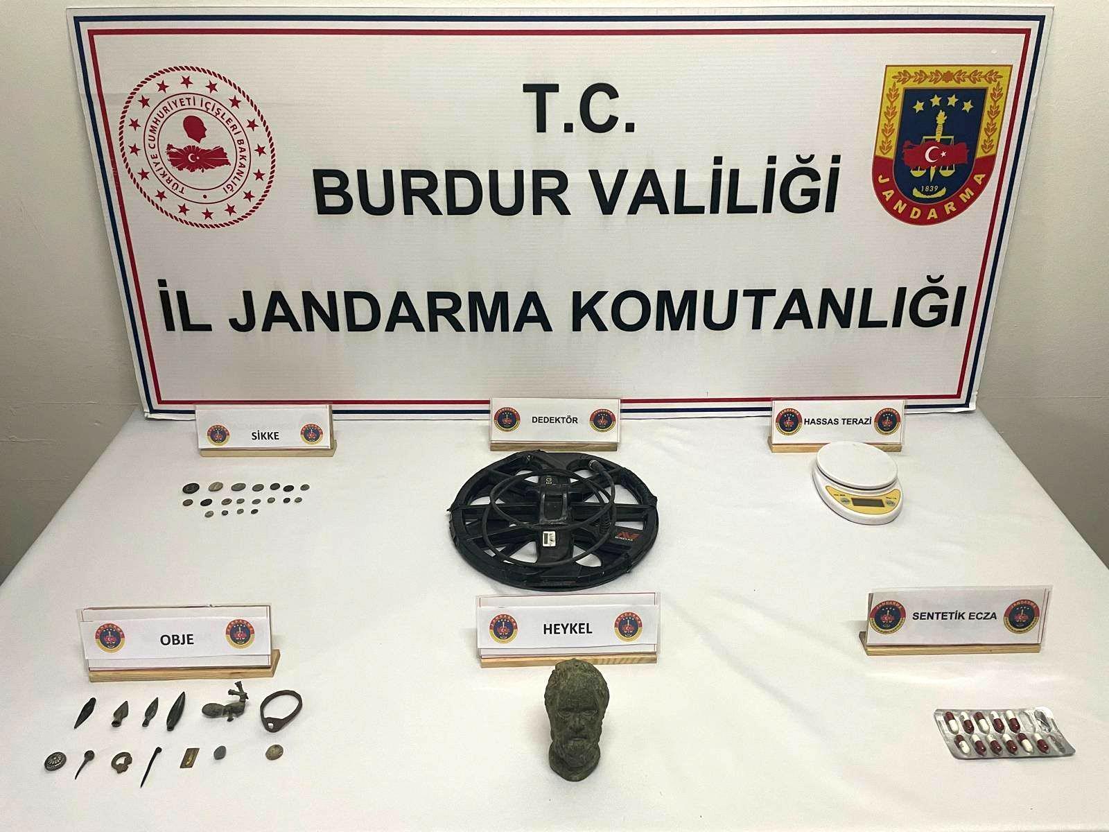 Burdur İl Jandarma Komutanlığı ekipleri tarafından 1-30 Temmuz tarihleri arasında kaçakçılık ve narkotik suçlarla mücadeleye yönelik yapılan 19 operasyonda 26 kişi gözaltına alındı. İşlemlerinin ardından adliyeye sevk edilen şüphelilerden 19'u serbest bırakıldı. 4 kişi hakkında adli kontrol kararı uygulandı. 3 kişi ise tutuklanarak Burdur E Tipi Kapalı Cezaevi'ne konuldu. Operasyonlarda 97 bin 680 dolu makaron, 50 kilo açık sarmalık tütün, 100 sigara kâğıdı, 391 sikke, 41 obje, 13 yüzük, mühür, heykel, 2 dedektör, 16 muhtelif kazı malzemesi, 1 kilo amonyum nitrat, 2 tabanca, 2 av tüfeği, 212 mühimmat, 5 kök kenevir bitkisi, 3 gram bonzai (34 kullanımlık), 11 sentetik ecza, hassas terazi ve 16 kullanma aparatı ele geçirildi. (DHA)