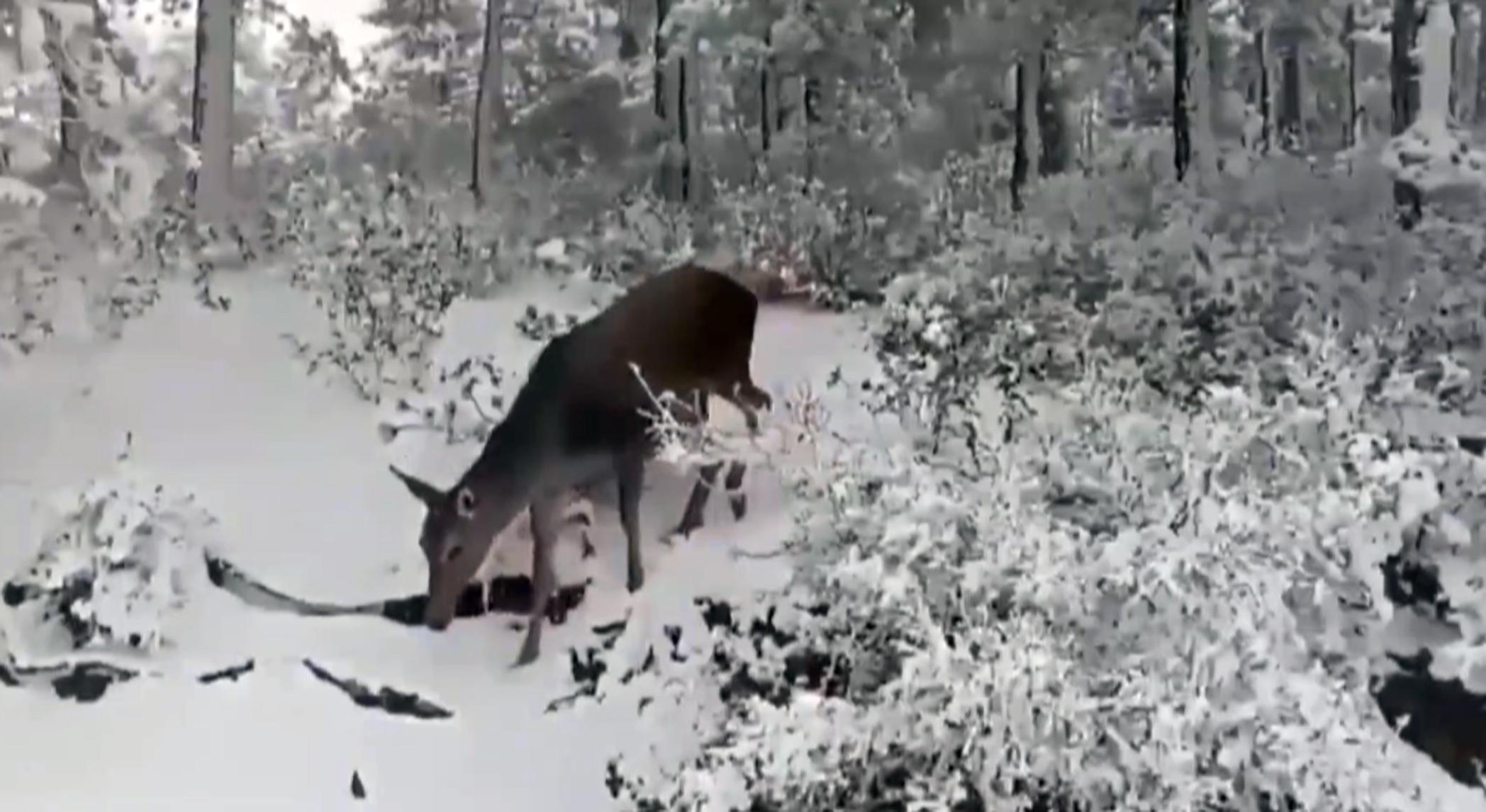 Salda Gölü çevresine bırakılan kızılgeyikler karlı ortamda görüntülendi