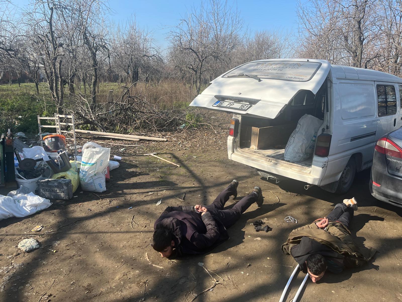 Yıldırım İlçe Emniyet Müdürlüğü Suç Önleme ve Soruşturma (SÖS) Büro Amirliği ekipleri, 22 Şubat’ta, Yiğitler Mahallesi'nde, M.K.’ye (37) ait, park halindeki 16 CND 12 plakalı otomobilin çalındığı ihbarıyla harekete geçti. Otomobil aynı gün Oto Sanayi Sitesi’nin (OTOSANSİT) üst tarafındaki parkta terk edilmiş halde bulunurken, 2 gün sonra Güllük Mahallesi’nde V.K.’ye (41) ait 16 PP 161 plakalı minibüsün çalındığı ihbarı geldi. Her 2 bölgedeki güvenlik kamerası görüntülerini inceleyen polis ekipleri, şüphelilerin, 23 suç kaydı bulunan ve ‘Silahla, birden fazla kişi ile birlikte konutta geceleyin yağma’ suçundan 16 yıl 10 ay kesinleşmiş hapis cezasıyla aranan Maşallah S. (21) ile 17 suç kaydı bulunan Ahmet Can D. (21) olduğunu belirledi. Şüpheliler, 24 Şubat’ta saat 15.00 sıralarında, çaldıkları minibüsle Şirinevler Mahallesi 11 Eylül Bulvarı'nda seyir halindeyken takiple yakalanıp gözaltına alındı. (DHA)