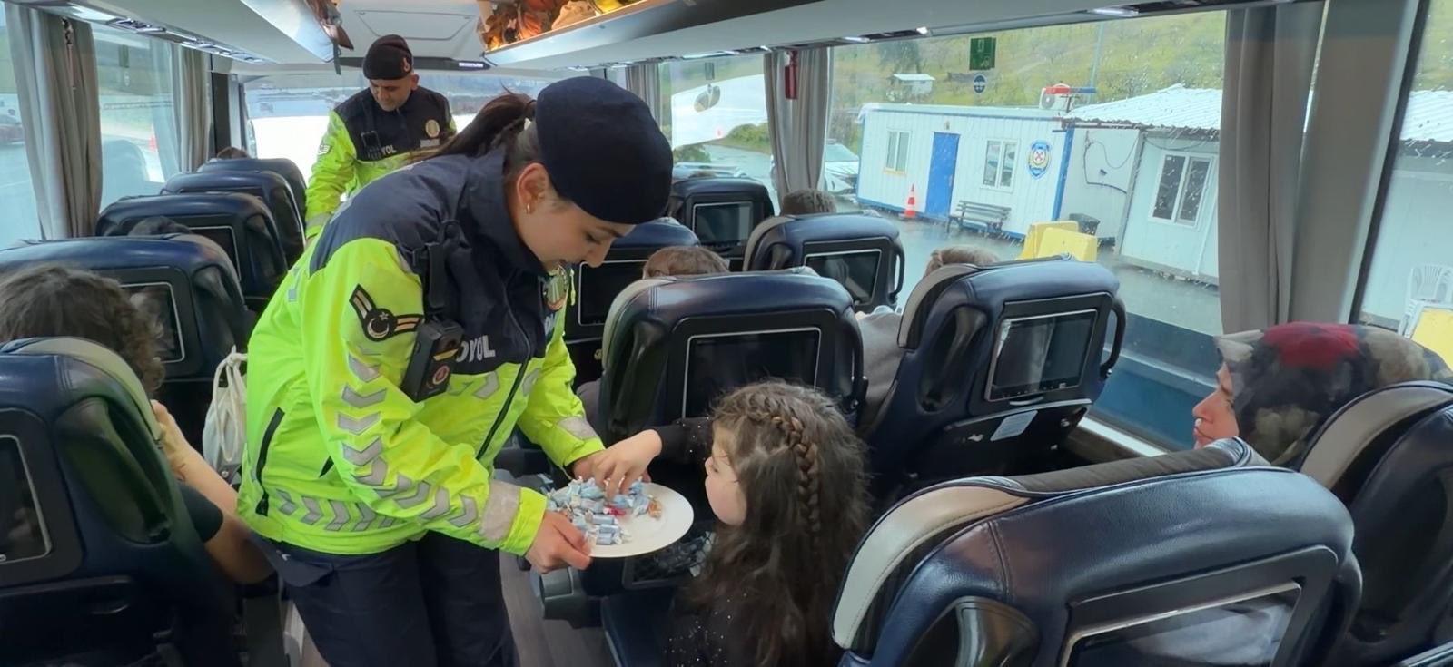 Osman SAK/ BURSA, (DHA)- BURSA’da Jandarma ekipleri, trafik tedbirleri kapsamında ‘Bayram Sensiz Olmaz’ adlı denetimlerini yollarda sürdürürken, seyahat eden vatandaşların bayramını kutlayarak sürücüleri dikkatli olmaları konusunda uyardı.