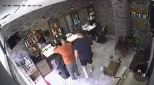 Bursa’nın Gemlik ilçesinde 1 saat arayla meydana gelen 3.9 ve 4.2 büyüklüğündeki depremler ilçede paniğe yol açtı. 4.2'lik sarsıntı sırasında bir berber, tıraşı yarım bırakıp müşterisiyle birlikte dükkandan dışarı çıktı. Berber dükkanında yaşanan panik, güvenlik kamerasına yansıdı. (DHA)
