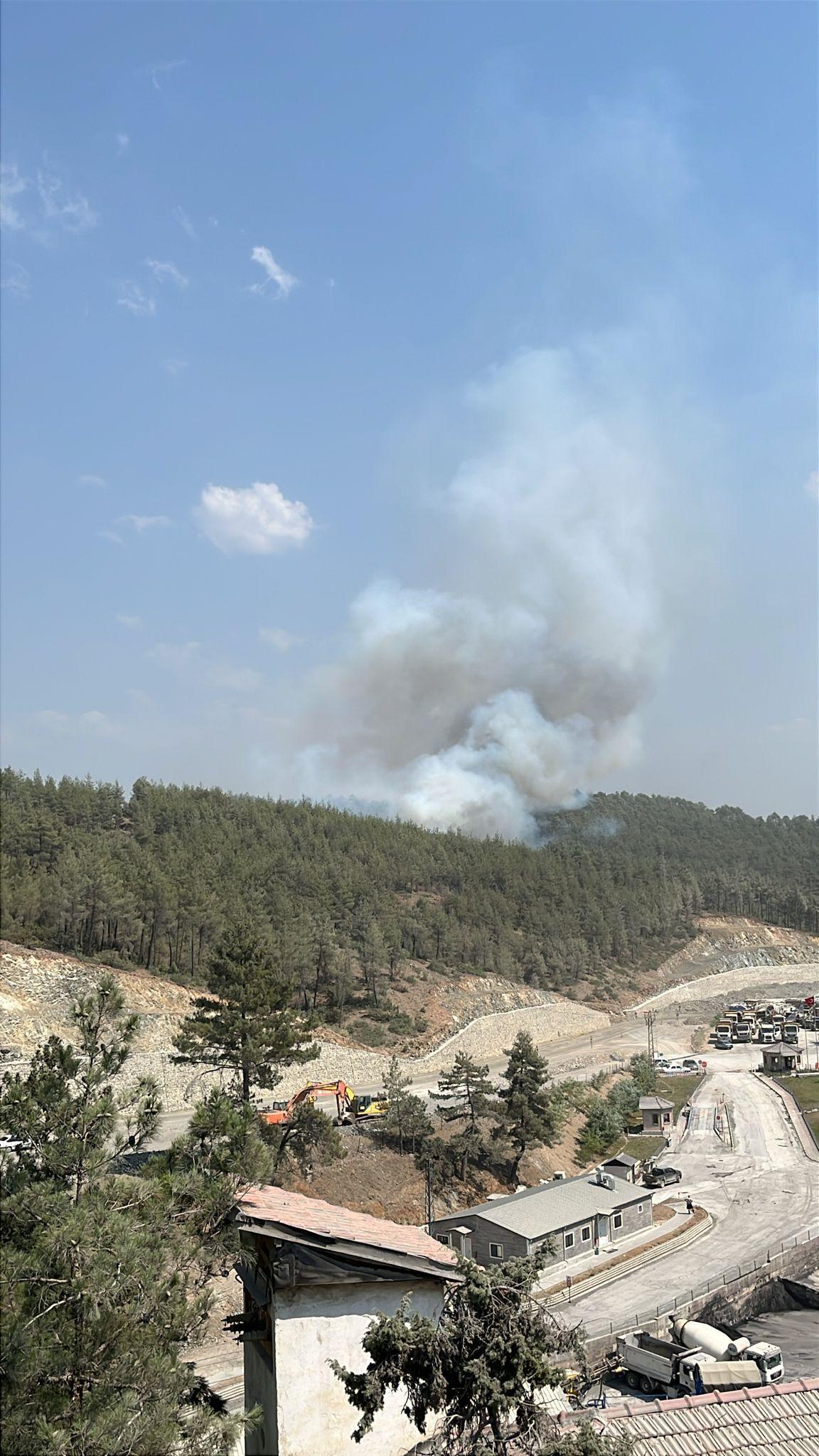 Orhaneli ilçesi Harmancık yolu Meyran mevkisinde, 26 Temmuz’da çıkan ve 5’inci gününde kontrol sağlanıp, soğutma çalışmalarının sürdürüldüğü bölgede alevler yeniden canlandı. Meyran mevkisindeki maden ocaklarının çevresinden dumanlar yükselirken, havadan ve karadan müdahale başlatıldı. (DHA)