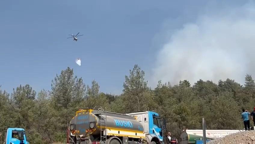 Orhaneli ilçesi Harmancık yolu Meyran mevkisinde, soğutma çalışmalarının sürdüğü bölgede saat 15.00 sıralarında canlanan alevler, 7 helikopter ve 2 uçağın havadan, TOMA, su tankerleri ve arazözlerin karadan müdahalesiyle kontrol altına alınarak, ilerlemesi durduruldu. (DHA)