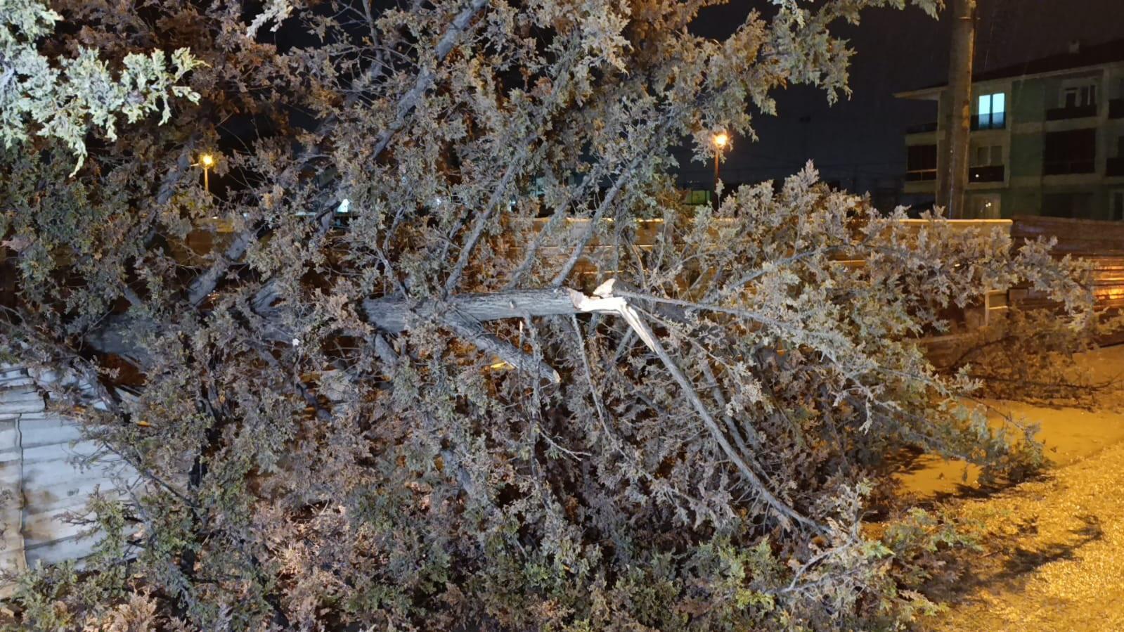 Olay, saat 22.30 sıralarında Fatih Mahallesi Emniyet Sokak’ta meydana geldi. İnşaat alanındaki ağaç, bölgede etkili olan yağış ve kuvvetli rüzgarın etkisiyle kökünden ayrılarak sokağa devrildi. İhbar üzerine olay yerine gelen belediye ekipleri tarafından kesilen ağaç yoldan kaldırıldı. Olay sırasında sokakta kimsenin bulunmaması olası faciayı önledi. Yetkililer, kuvvetli rüzgar nedeniyle vatandaşları muhtemel risklere karşı dikkatli olmaları konusunda uyardı. (DHA)