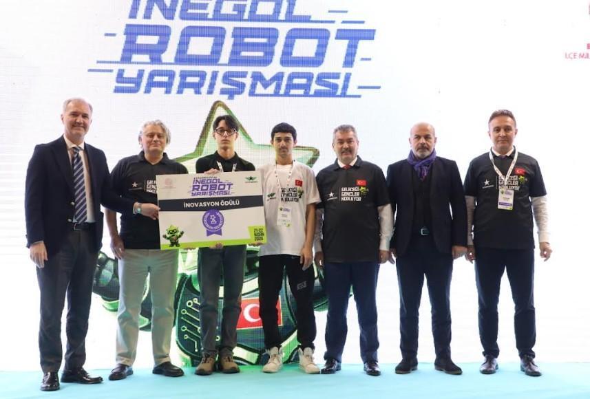 Yavuz YILMAZ/İNEGÖL (Bursa), (DHA)-BURSA’da İnegöl İlçe Milli Eğitim Müdürlüğü tarafından ‘Geleceği Gençler Kodluyor’ sloganıyla düzenlenen İnegöl Robot Yarışması renkli görüntülere sahne oldu. 5 farklı kategoride yapılan yarışmada İnegöl Belediyesi’nin Baykoca Teknoloji Platformu proje takımlarından Yasin Yıldızhan ve Murat Kotan da inovasyon ödülü kazandı.