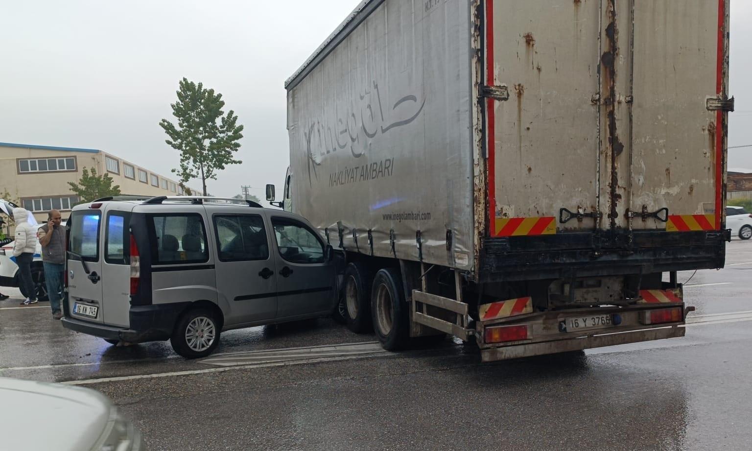 İnegöl'de, hafif ticari araç kamyona çarptı; 1 yaralı