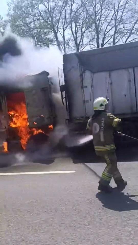 Olay, saat 14.00 sıralarında İnegöl-Bursa kara yolu Babasultan Mahallesi mevkisinde meydana geldi. Bursa'dan İnegöl istikametine giden Mehmet Ö. yönetimindeki 10 ER 225 plakalı TIR'ın motor kısmından duman yükselmeye başladı. Durumu fark eden sürücü, aracı yol kenarına çekerek 112 Acil Çağrı Merkezi’ne durumu bildirdi. Yangın ihbarla olay yerine gelen itfaiye ekipleri tarafından söndürülürken, o anlar yoldan geçen diğer sürücüler tarafından cep telefonu kamerasıyla görüntülendi. TIR kullanılmaz hale gelirken, yangının çıkış nedenine ilişkin inceleme başlatıldı. (DHA)
