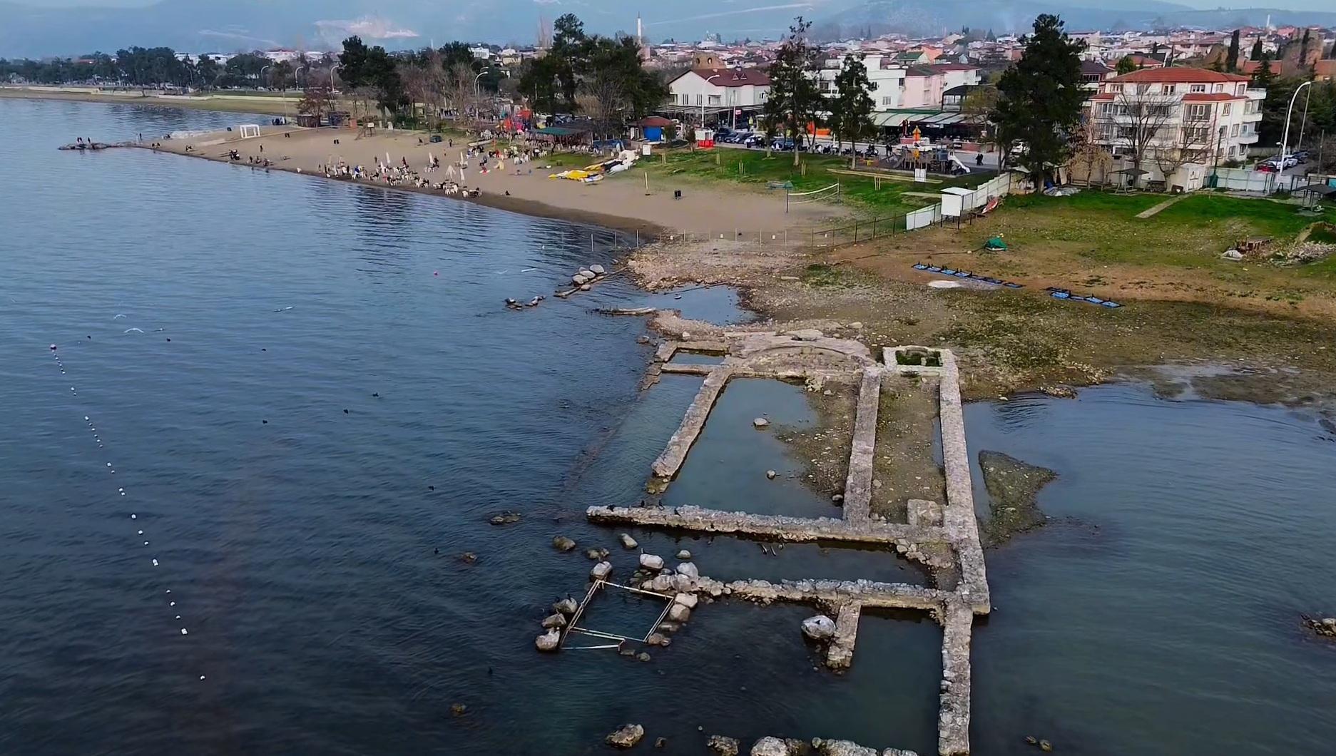 Marmara Bölgesi'nin en büyük, Türkiye'nin ise 5'inci büyük doğal gölü olan, 298 kilometrekarelik İznik Gölü'nde, küresel ısınma, tarım arazilerindeki bilinçsiz ve vahşi sulama nedeniyle kuraklık yaşanırken, mevsimsel yağışların azalmasıyla birlikte su seviyesinde de düşüş gözlemleniyor. Son 10 yılda göldeki çekilme zaman zaman 150 metreye kadar ulaştı. 2014 yılında Bursa Büyükşehir Belediyesi'nin İznik'te başlattığı 'Tarihi Kültürel Mirası Tespit ve Havadan Fotoğraflama Çalışmaları' sırasında tespit edilen Aziz Neophytos Bazilikası da zaman içerisinde su yüzeyine çıktı. Suyun 2 metre derinliğindeki bazilika, artık dronla net bir şekilde görüntüleniyor.