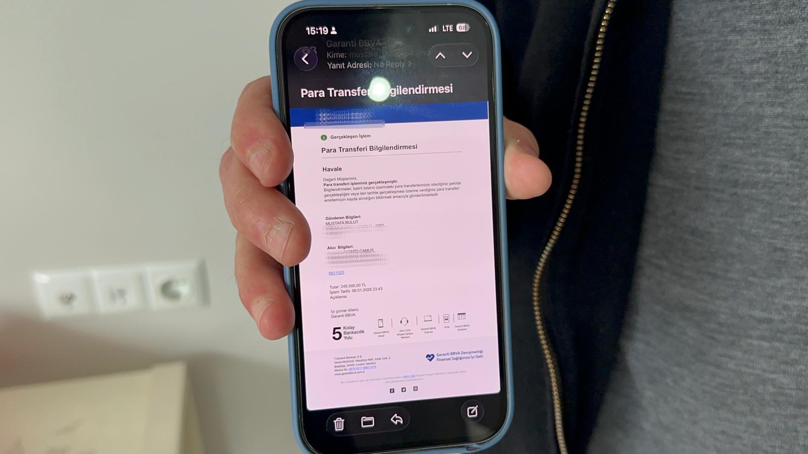 Ertesi sabah buluşmak için ayrıldığı kişilerin dolandırıcı olduğu, otele girdiğinde anladığını söyleyen Bulut, “Otelin önünde indirip, aniden uzaklaştılar. Otele sorduğumda rezervasyon olmadığını öğrendim. Şüphelenip kartlarımı ve hesaplarımı bloke ettirdim. Havale işlemine de bloke konuldu. Polise gidip ifade verdim. Kameralardan sabah kullanılan araç ve sahibi tespit edildi. Bana gösterilen şahsı teşhis ettim. Ayrıca telefonuma işlem yapıldığına dair mesaj da geldi” diye konuştu.