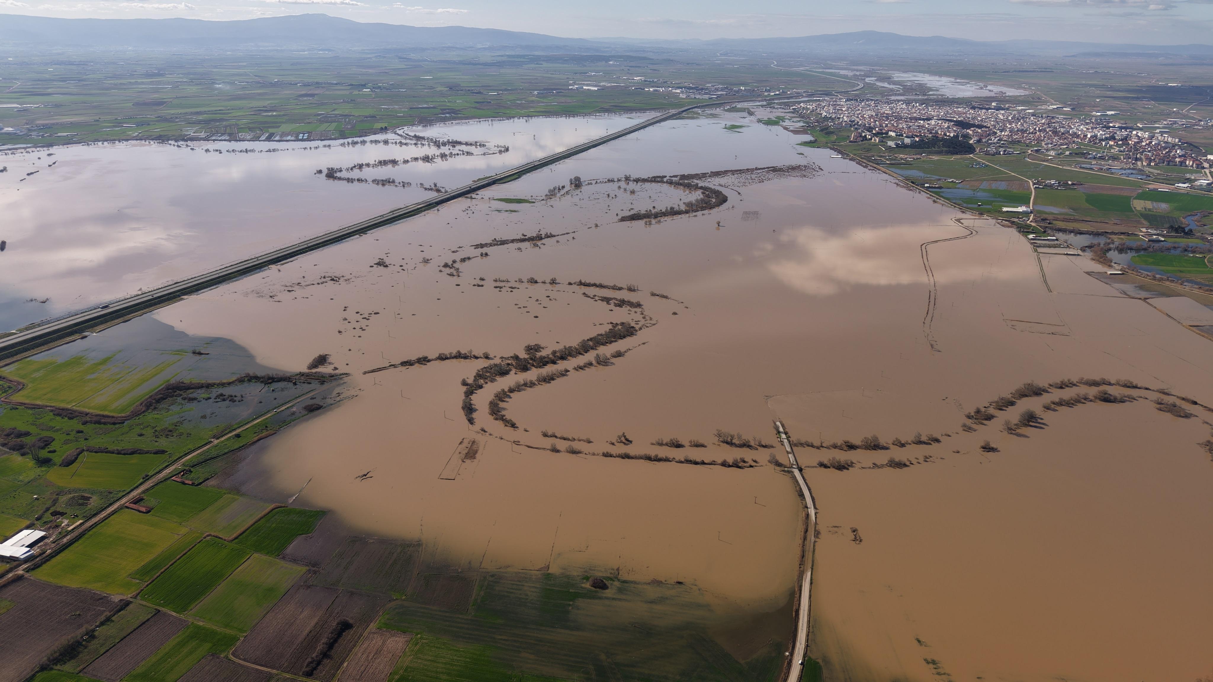 Bursa'nın Karacabey ilçesinde karın erimesi ile taşan Çapraz Çayı, tarım arazileri, yolları ve köprüleri su altında bıraktı. Yaşanan taşkın tarım arazilerinde zarara neden olurken, su altında kalan yaklaşık 5 bin dönüm tarım arazisi dronla görüntülendi. Öte yandan taşkın nedeniyle Gebze-Orhangazi-İzmir Otoyolu’nun iki yakası da su altında kaldı.