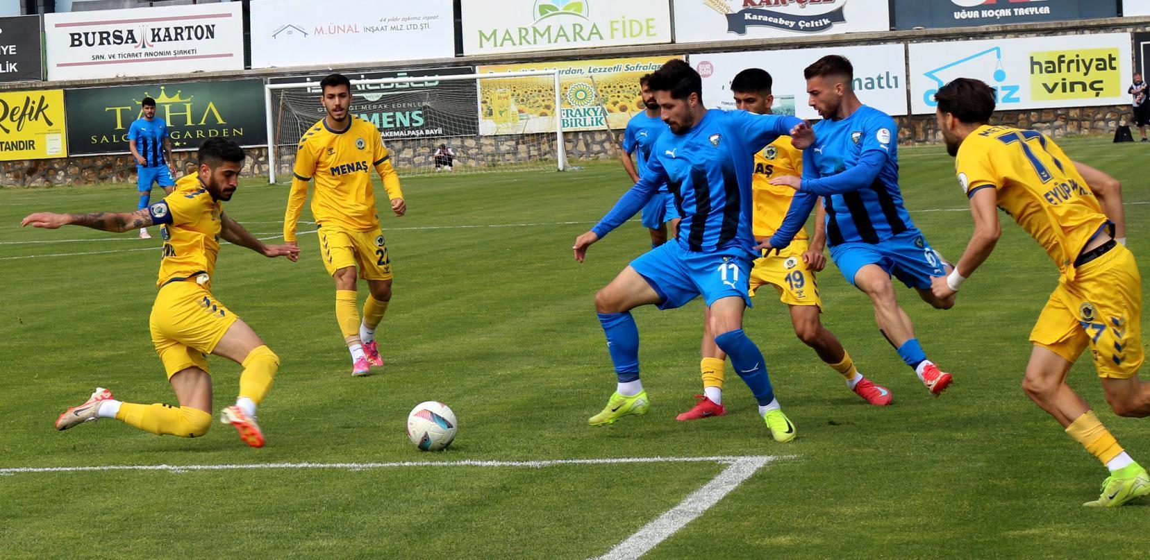 2’nci Lig Kırmızı Grup 33’üncü hafta mücadelesinde Karacabey Belediyespor, sahasında konuk ettiği Menemen FK'yı 2-0 mağlup etti. (DHA)