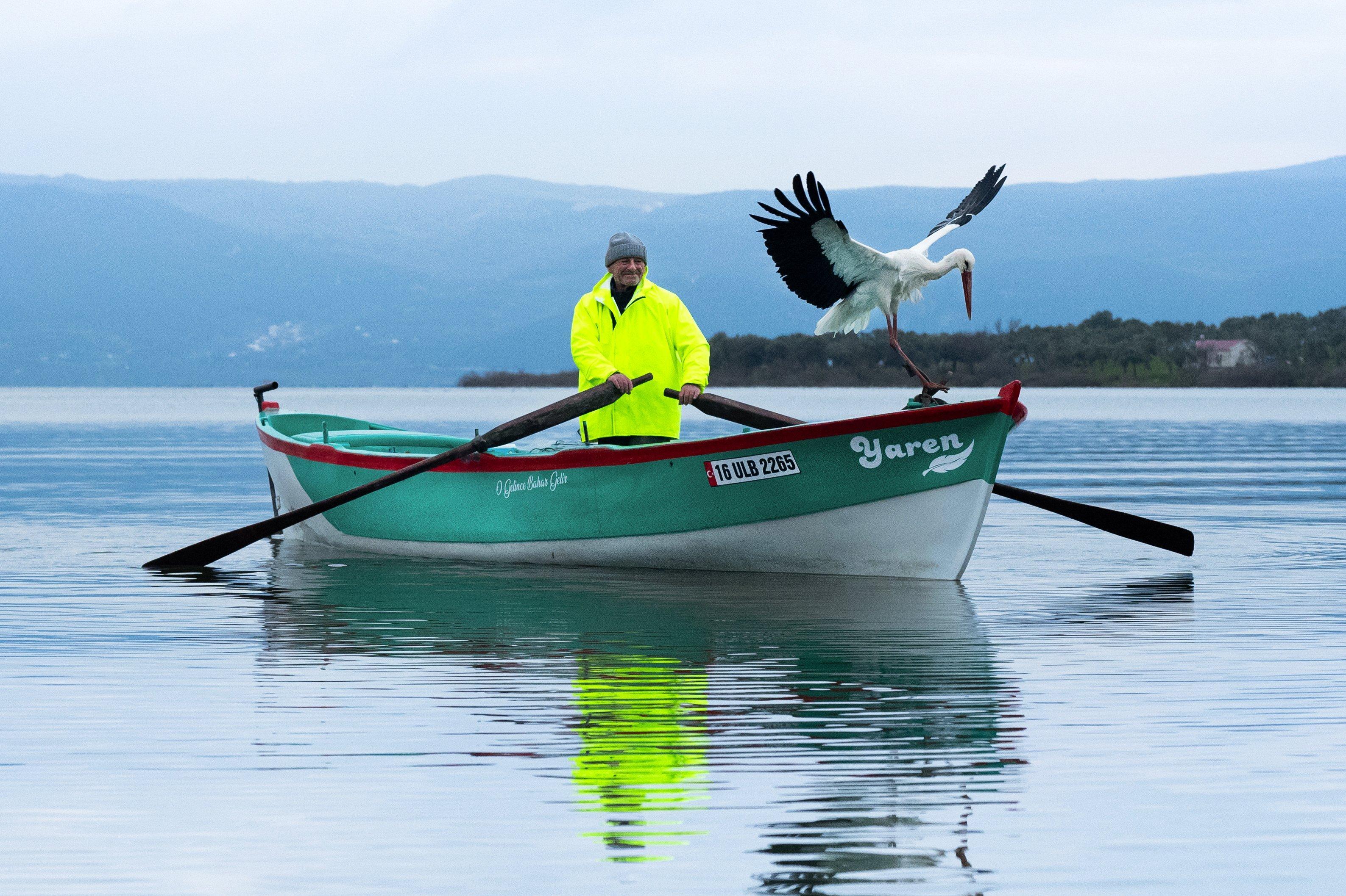 Esra TÜRKER/KARACABEY (Bursa), (DHA)-BURSA'da yaşayan balıkçı Adem Yılmaz (70) ile dostluğu filme konu olan Yaren leylek, Eskikaraağaç Leylek Köyü'ne bu yıl 15'inci kez geldi. 24 Şubat'ta gelen ve Nazlı zannedilen leyleğin, göle açılan Yılmaz'ın kayığına konması ile Yaren olduğu anlaşılırken, o anlar yaban hayatı fotoğrafçısı Alper Tüydeş tarafından görüntülendi.