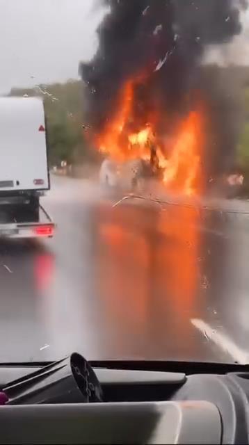İnegöl'den aldığı 35 yolcusuyla Bursa'ya gitmek için yola çıkan İnegöl Seyahat'e ait, Erkan Sevi’nin kullandığı 16 PC 787 plakalı otobüs, saat 09.30 sıralarında ilçenin Ümitalan mevkisine geldiğinde motor kısmından alev aldı. Alevleri fark eden şoför, otobüsü yol kenarına çekerek yolcuları tahliye etti. İhbar üzerine bölgeye çok sayıda jandarma, itfaiye ve sağlık ekibi sevk edildi. İtfaiye ekipleri, alevleri kısa sürede söndürürken, otobüs kullanılamaz hale geldi.