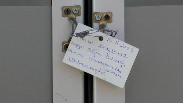 Diş kliniği, İl Sağlık Müdürlüğü tarafından 1 ay süreyle mühürlendi. Kliniğin mühürlenen kapısına, "16.11.2023 tarih ve 229439732 Sayılı Sağlık Bakanlığı oluruna istinaden 1 ay süreyle mühürlenmiştir" yazısı yazıldı.