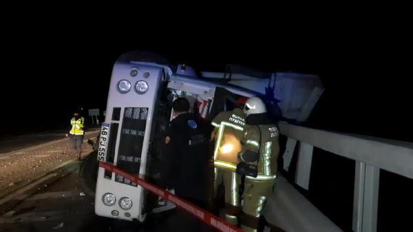Kamyon virajda yan yattı: 1 ölü, 1 yaralı