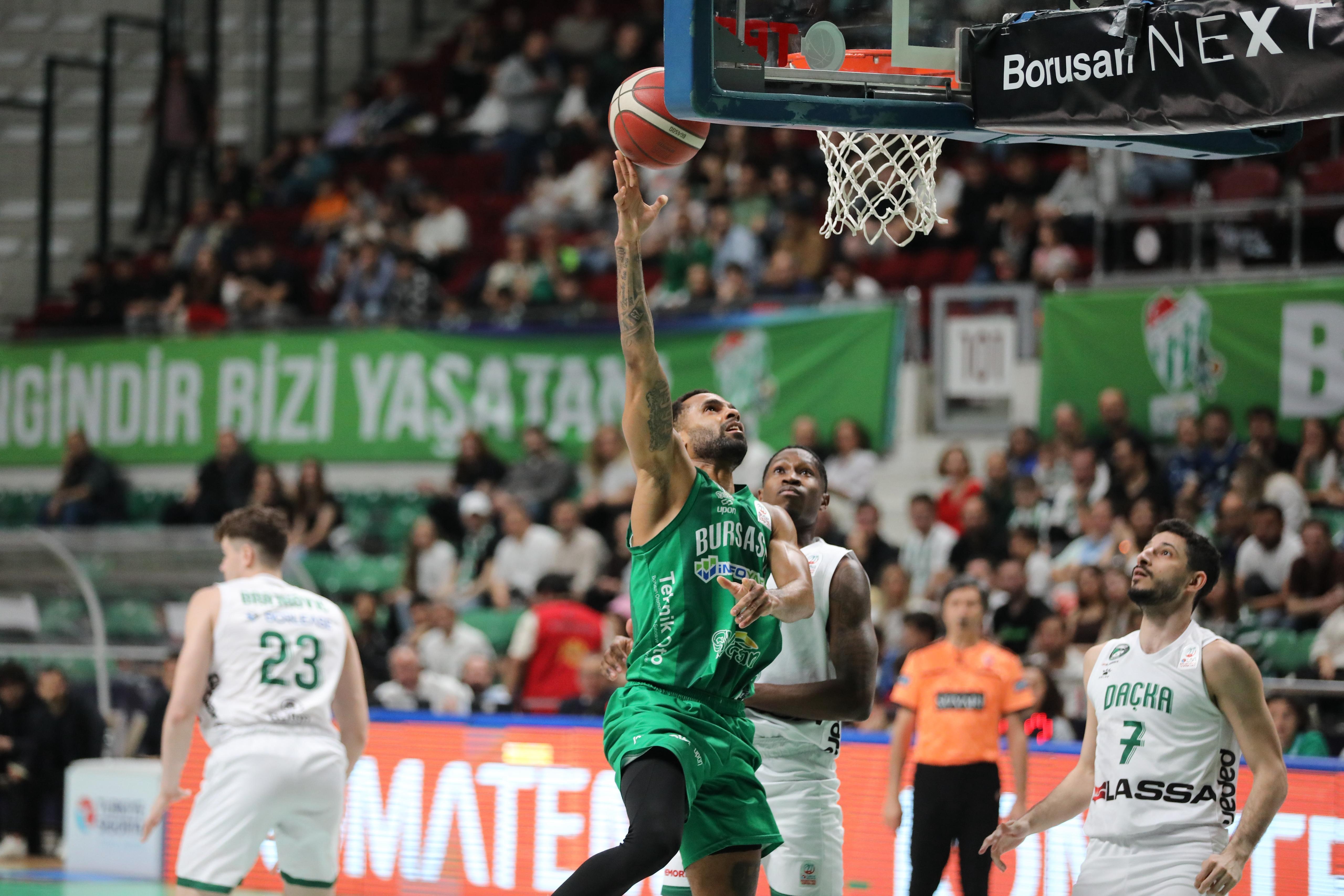 Türkiye Basketbol Süper Ligi'nin 29’uncu haftasında Bursaspor Basketbol, sahasında ağırladığı Darüşşafaka'yı 98-82 mağlup etti. (DHA)