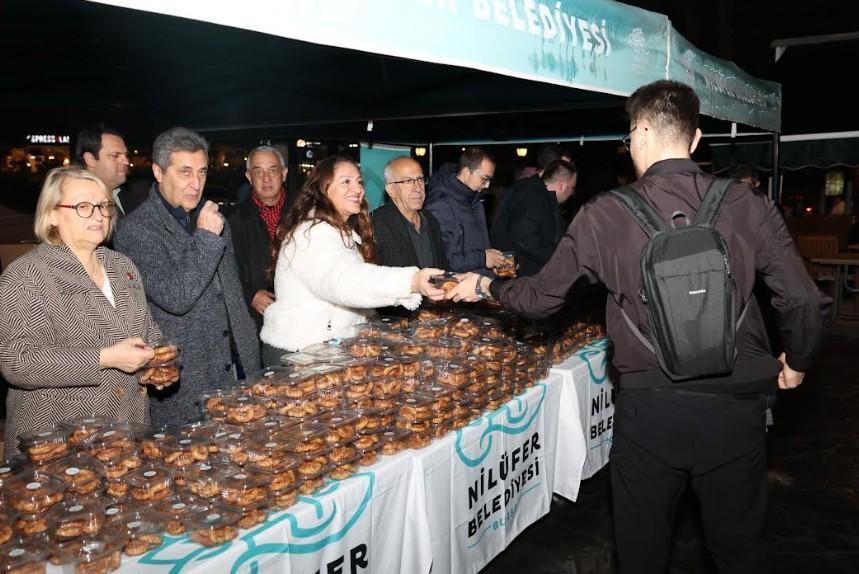 Vatandaşlara yönelik ikramların yanı sıra Nilüfer Belediyesi Halk Evi ve Alaaddinbey Ek Hizmet Binası’nda görev yapan belediye personeline de kandil simidi dağıtımı gerçekleştirildi. (DHA)