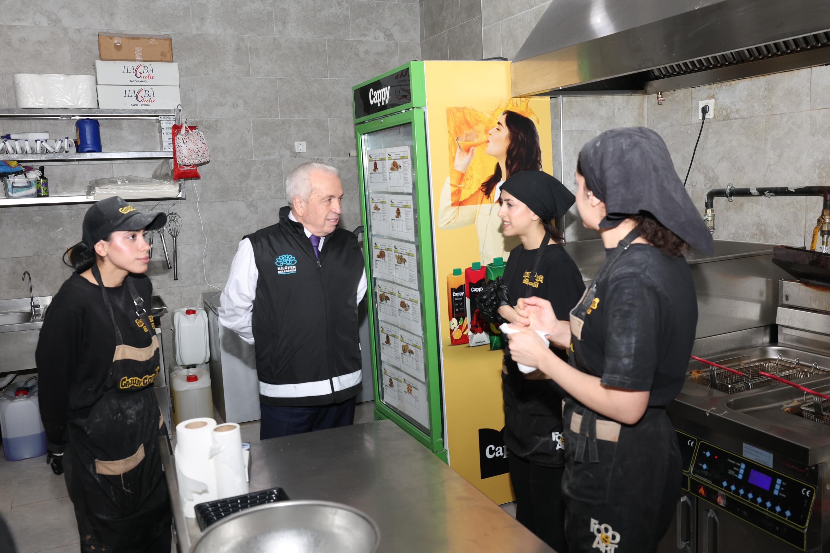 Nilüfer Belediyesi, ramazan ayının yaklaşmasıyla birlikte ilçe genelindeki gıda denetimlerini artırdı. Vatandaşların sağlıklı ve güvenilir gıdaya ulaşmasını sağlamak amacıyla fırın, pastane, kafe ve restoranlara yönelik gerçekleştirilen kontrollere, Nilüfer Belediye Başkanı Şadi Özdemir de katıldı. Halk sağlığını doğrudan ilgilendiren hijyen ve gıda güvenliği konularında hassasiyet gösteren belediye ekipleri, son olarak Gümüştepe Mahallesi’ndeki işletmeleri denetledi. Denetimlerde Başkan Şadi Özdemir’e, Belediye Başkan Yardımcısı Emre Karagöz de eşlik etti. İşletmelerin mutfak bölümlerine giren Başkan Özdemir; ürünlerin son kullanma tarihleri, saklama koşulları, genel temizlik, personel hijyeni ve ruhsat durumu gibi hususları yerinde inceledi.