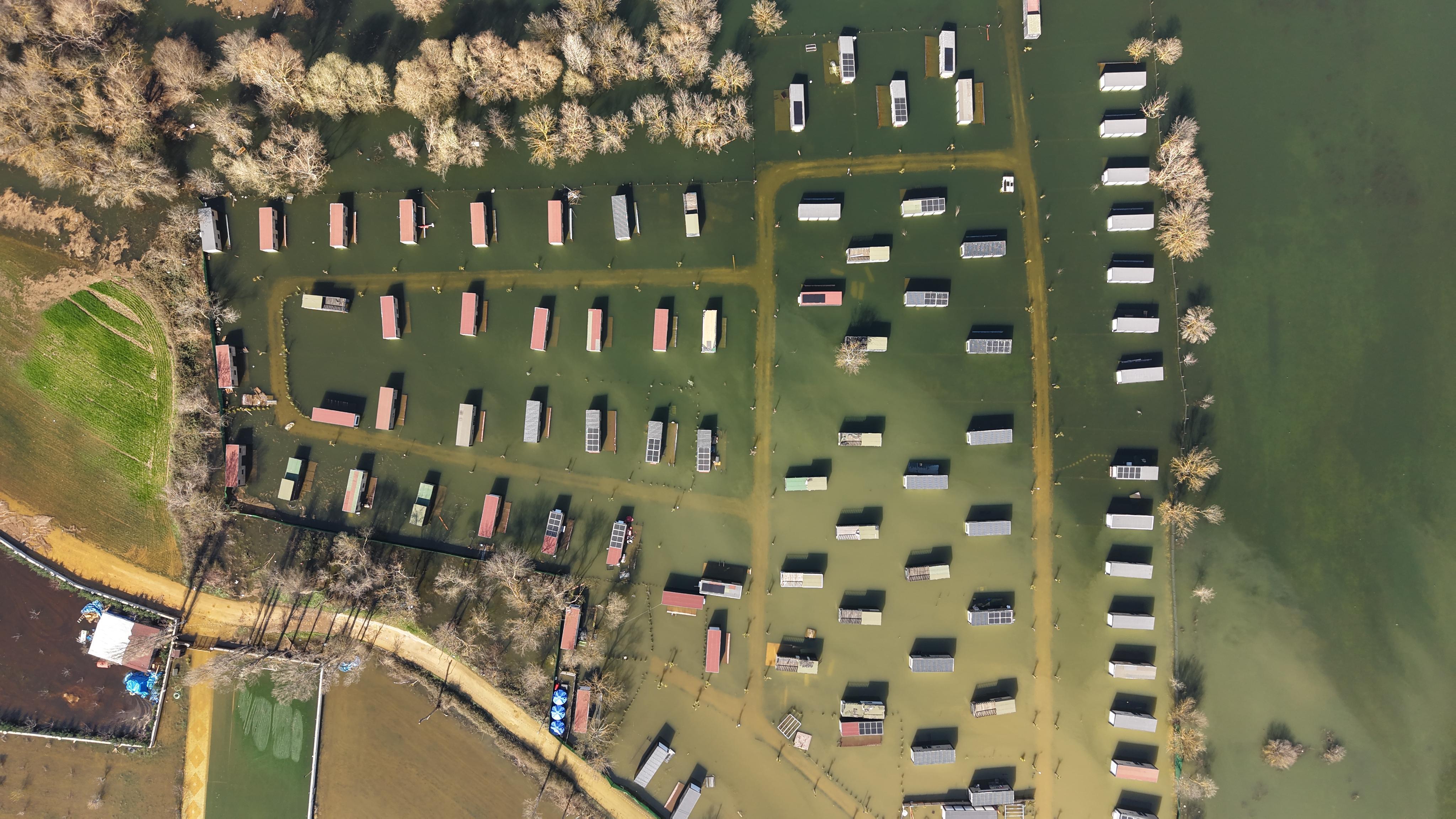 Yiğithan HÜYÜK-Hüseyin SEZGİN/BURSA, (DHA)- BURSA’da Uluabat Gölü’ndeki su seviyesinin yükselmesiyle, sular altında kalan tiny house ve hobi evleri, dronla görüntülendi.