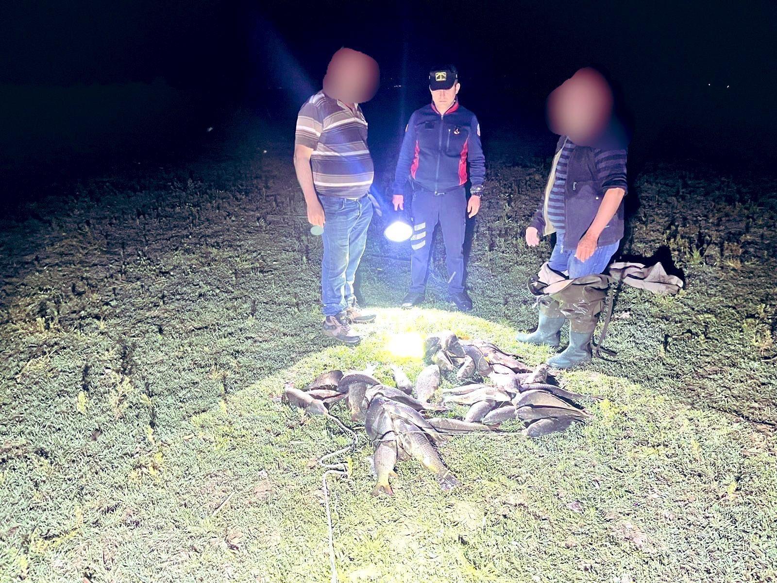 Bursa İl Jandarma Komutanlığı’na bağlı Nilüfer Jandarma Asayiş Bot Komutanlığı ekipleri, Uluabat Gölü’nde devriye sırasında 4 kişinin kaçak balık avcılığı yaptığını belirledi. Yapılan baskında 2 serpme ağ, 216 pinter, 5 kilo canlı kerevit, 461 kilosu canlı sazan olmak üzere 466 kilo balığa el konuldu. Balıklar göle bırakılırken, şüphelilere Su Ürünleri Kanunu’na muhalefetten toplam 67 bin 210 lira idari para cezası uygulandı. (DHA)
