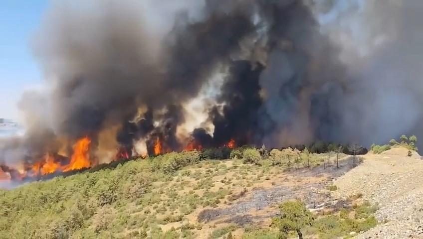 Bursa’nın Orhaneli ilçesinde dün çıkan ve kısmen kontrol atına alınan orman yangınında alevler yeniden canlanırken, Harmancık Belediyesi’nden yapılan anonslarda, yangının artarak devam ettiği, traktör ve su tankerleri olan vatandaşların bölgeye intikal etmeleri istendi. İlçedeki çiftçiler, traktörlerine bağlı ilaçlama tankerlerine su doldurarak, hızla yangın bölgesine gitti. (DHA)