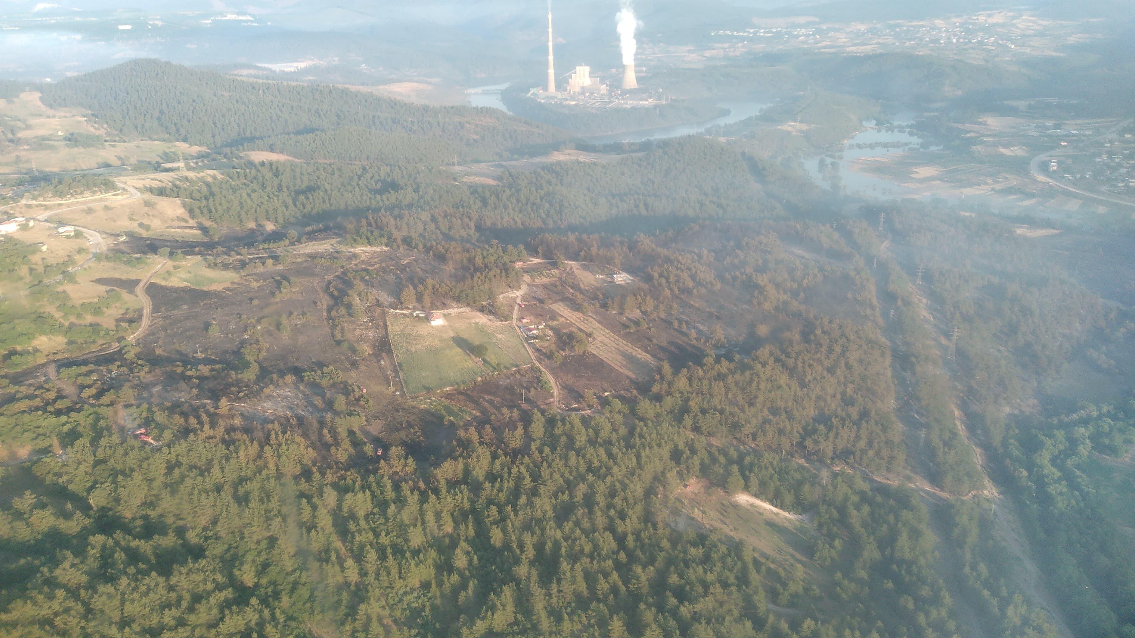 Sabahın ilk ışıklarıyla, havadan çekilen görüntülerde, çam ormanlarının bir kısmının küle döndüğü görüldü. Yangında ekili araziler ciddi zarar görürken, yanan alan ise yapılacak ölçümlerin ardından belli olacak. Öte yandan, bölgedeki soğutma çalışmalarının tamamlanmasıyla yanan ormanda ağaçlandırma çalışması yapılacağı belirtildi. (DHA)