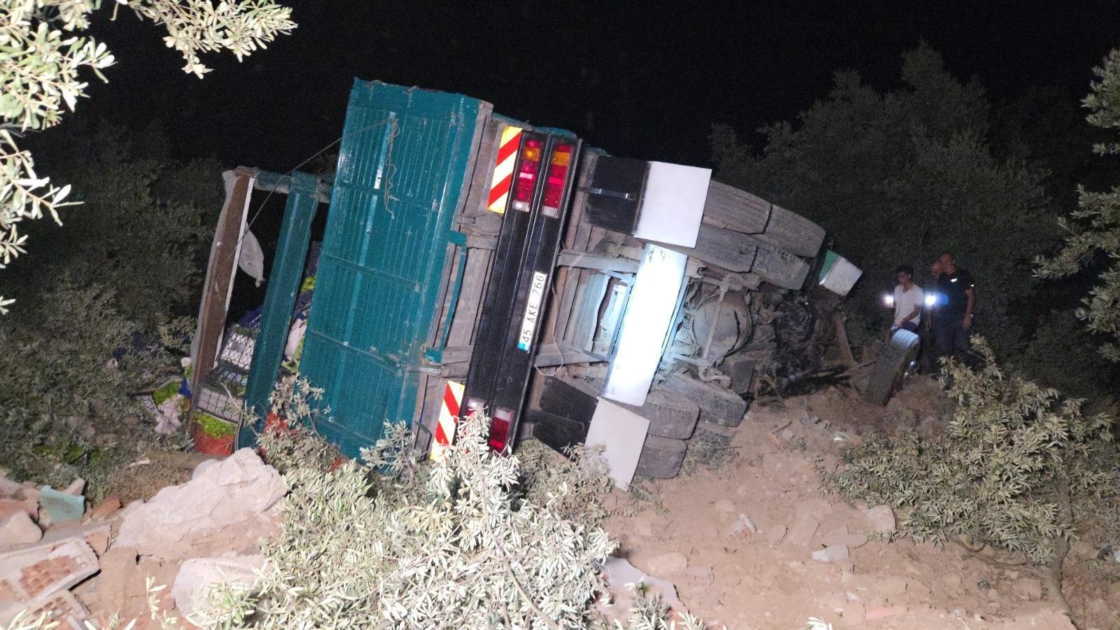 Zeytinliğe uçan biber yüklü kamyonda sıkışan sürücü yaralandı