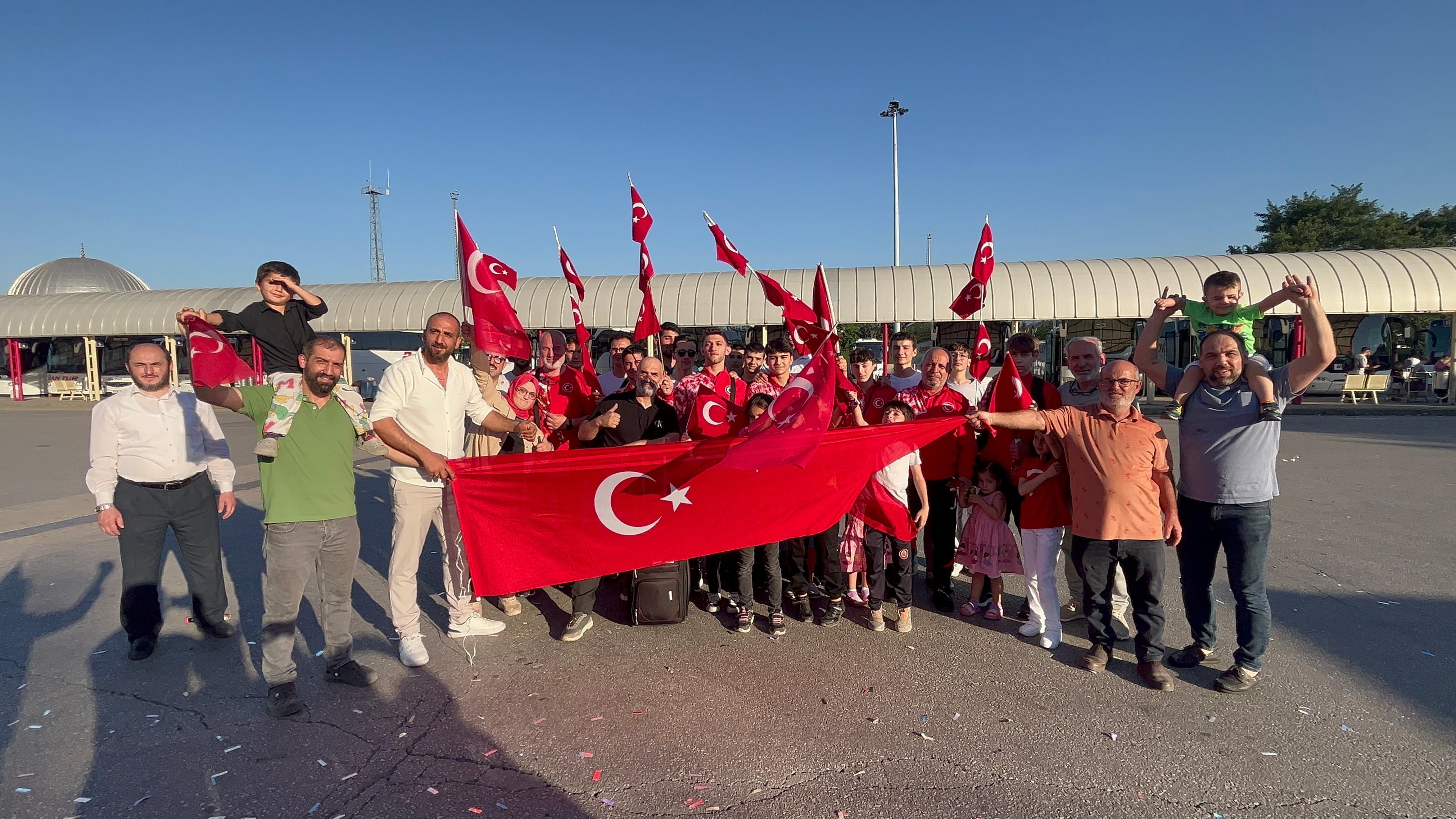 Avrupa Bilek Güreşi Şampiyonası'nda dereceye giren sporcular, gül ve meşalelerle karşılandı