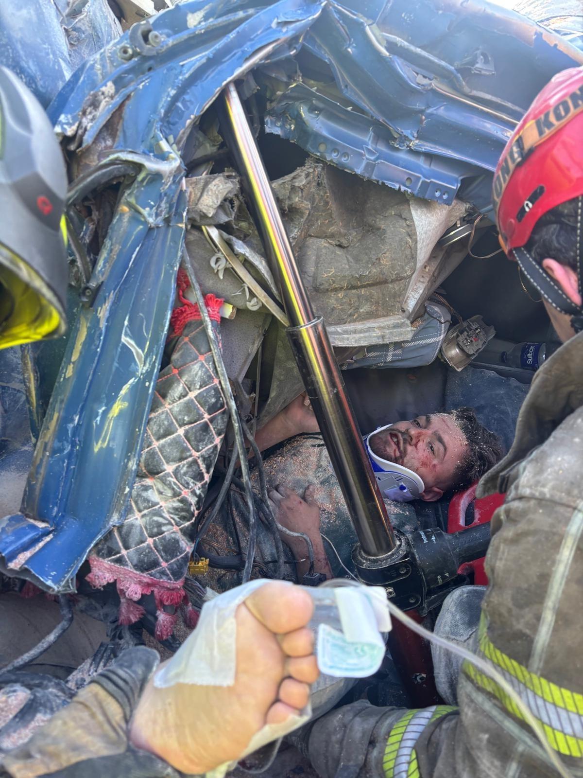 Yiğithan HÜYÜK-Yavuz YILMAZ/BURSA, (DHA)- BURSA’da bariyerlere çarpıp hurda yığınına dönen TIR’da sıkışan sürücü A.U., itfaiye ekipleri tarafından kurtarılıp, hastaneye kaldırıldı. Kurtarma anları, cep telefonu kamerasıyla kayda alındı.