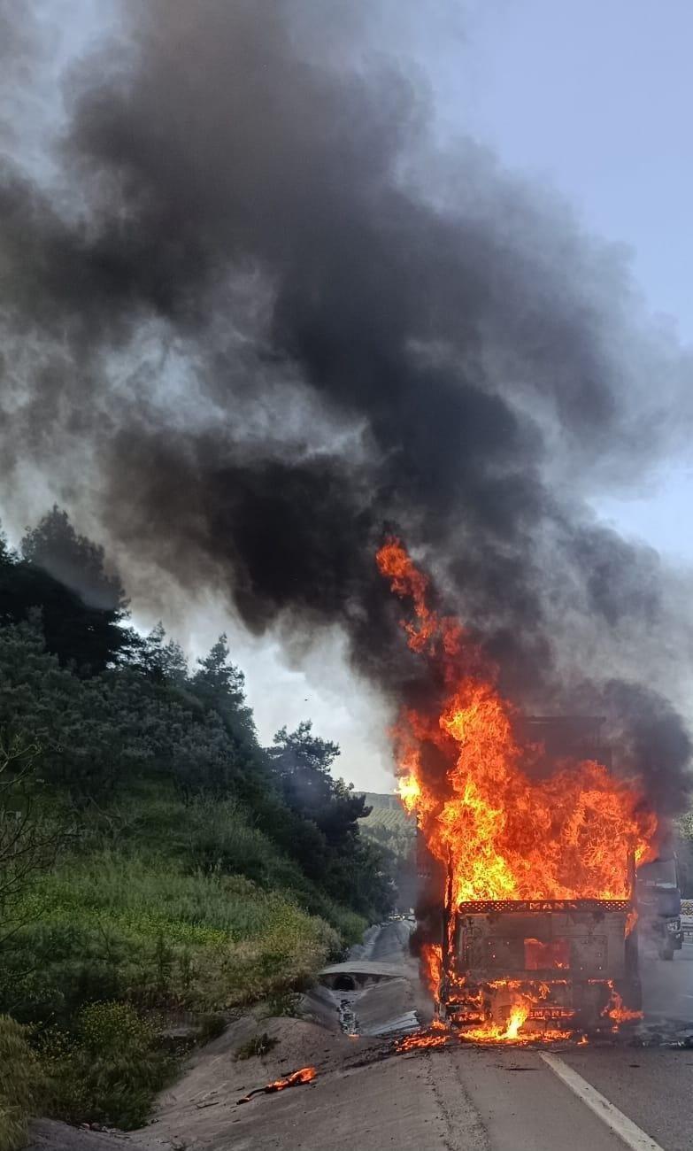 Bursa'da seyir halindeki kamyon alev alev yandı