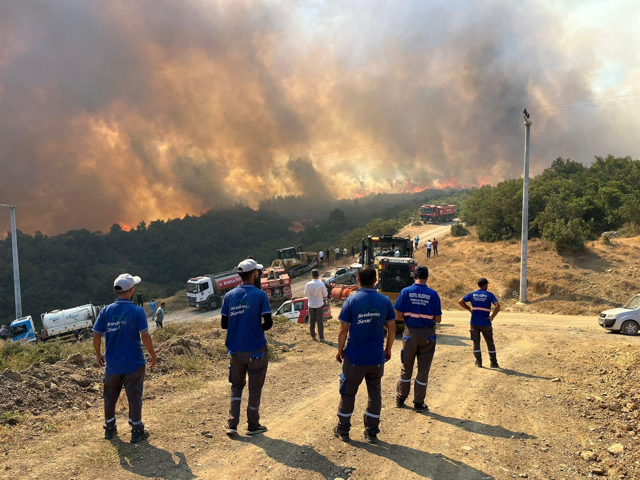 Bursa’nın Yenişehir ilçesi Yukarı Marmaracık Mahallesi’nde başlayan ve Fethiye Mahallesi ile Kestel ilçesinin Seymen Mahallesi sınırına uzanan orman yangını, yerleşim alanlarına 10 metreye kadar yaklaştı. Kestel Belediye Başkanı Ferhat Erol, DHA muhabirine yaptığı açıklamada, kırsaldaki 40 bağ evinin tahliye edildiğini, bölgedeki Güneş Enerjisi Santrallerinin (GES) de zarar gördüğünü söyledi. Erol, yangına müdahalenin 6 helikopter, 1 uçak, Orman Bölge Müdürlüğü’ne ait 33 arazöz, Bursa Büyükşehir Belediyesi İtfaiye Daire Başkanlığı ile Yenişehir ve Kestel Belediyesi itfaiye ekipleri tarafından hem havadan hem de karadan sürdürüldüğünü belirtti.