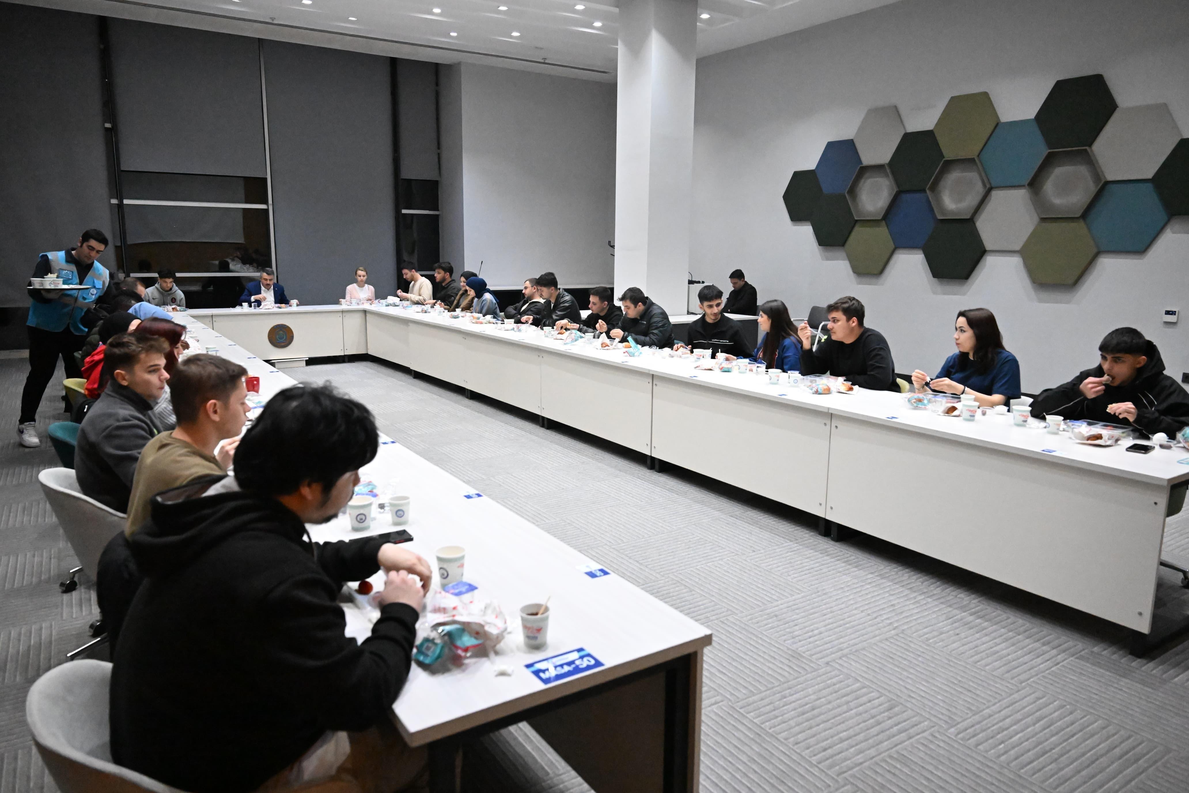 Kazım BULUT/ BURSA, (DHA)-BURSA'da Yıldırım Belediye Başkanı Oktay Yılmaz, Mümine Şeremet Uyumayan Kütüphanesi’nde düzenlenen sahurda ders çalışan öğrencilerle bir araya geldi.