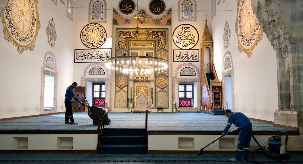 Temizlik İşleri Müdürlüğü ekipleri tarafından yürütülen çalışmalar kapsamında cami içleri ve çevrelerinin temizliği titizlikle yapılıyor. Belediye ekipleri, cami içlerinde genel temizlik yaparken cami bahçelerinde ise çöp toplama, süpürme ve yıkama işlemleri gerçekleştiriyor. Ayrıca oturma alanları, şadırvanlar ve abdesthaneler de detaylı bir şekilde dezenfekte ediliyor.